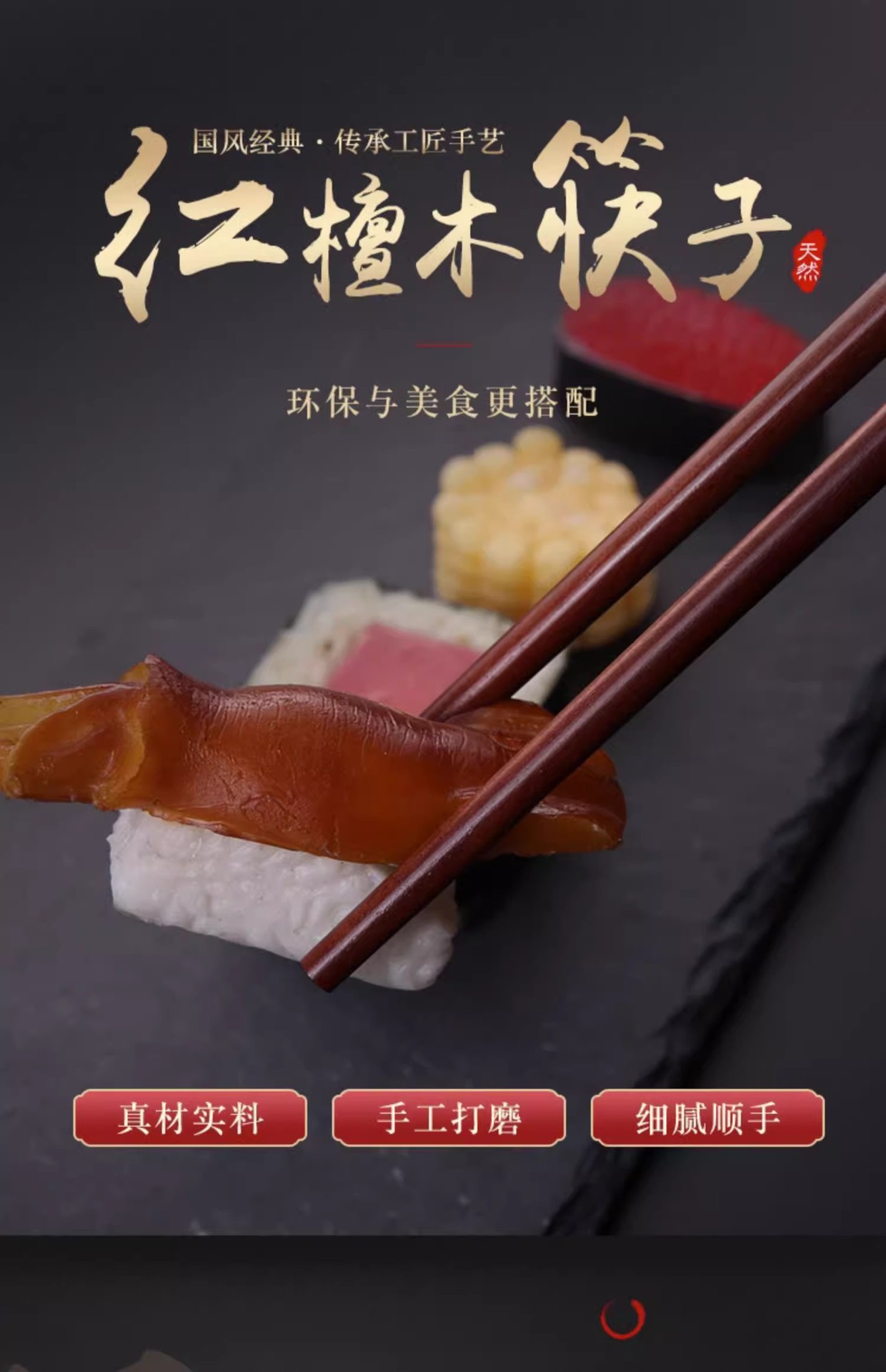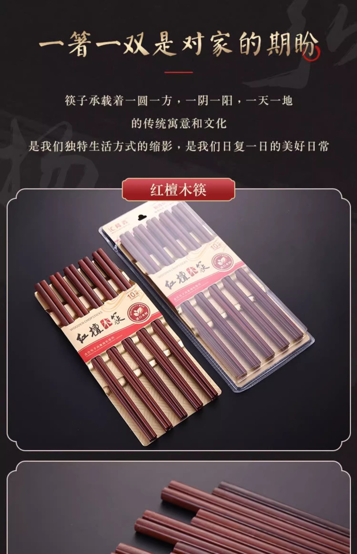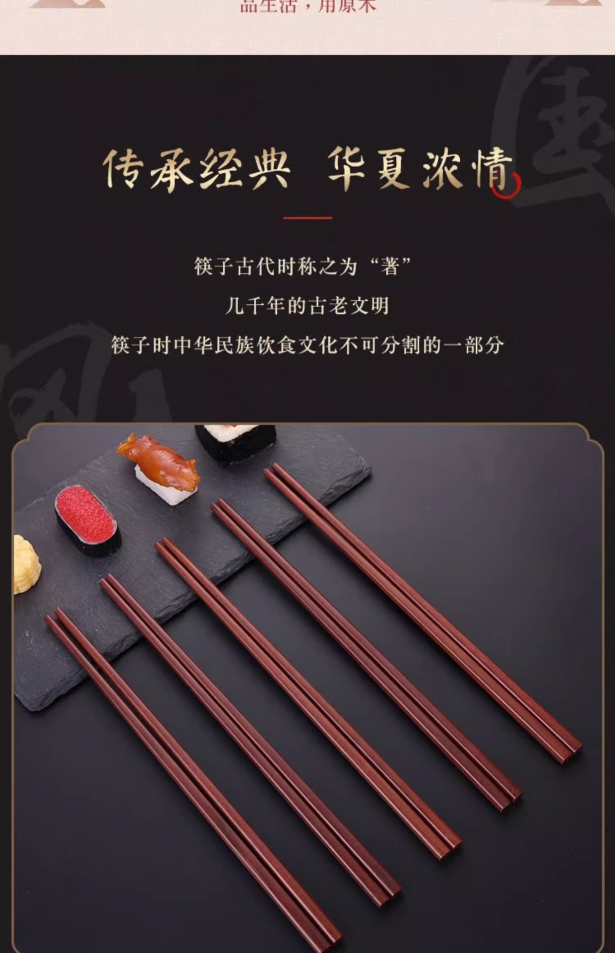 【好货严选】10双原木无漆无蜡实木筷红檀木鸡翅木筷子防滑原木