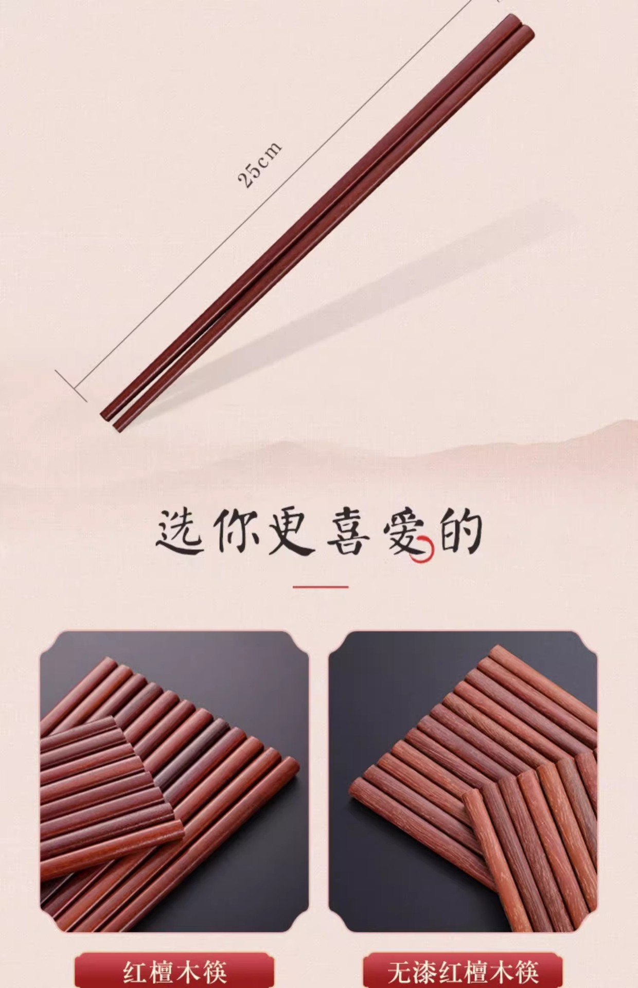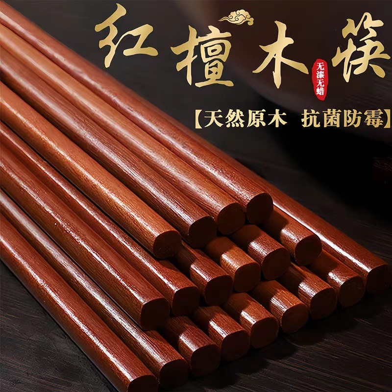 天然原木红檀木筷子家用无漆无蜡实木防霉防滑厨房木筷子家用