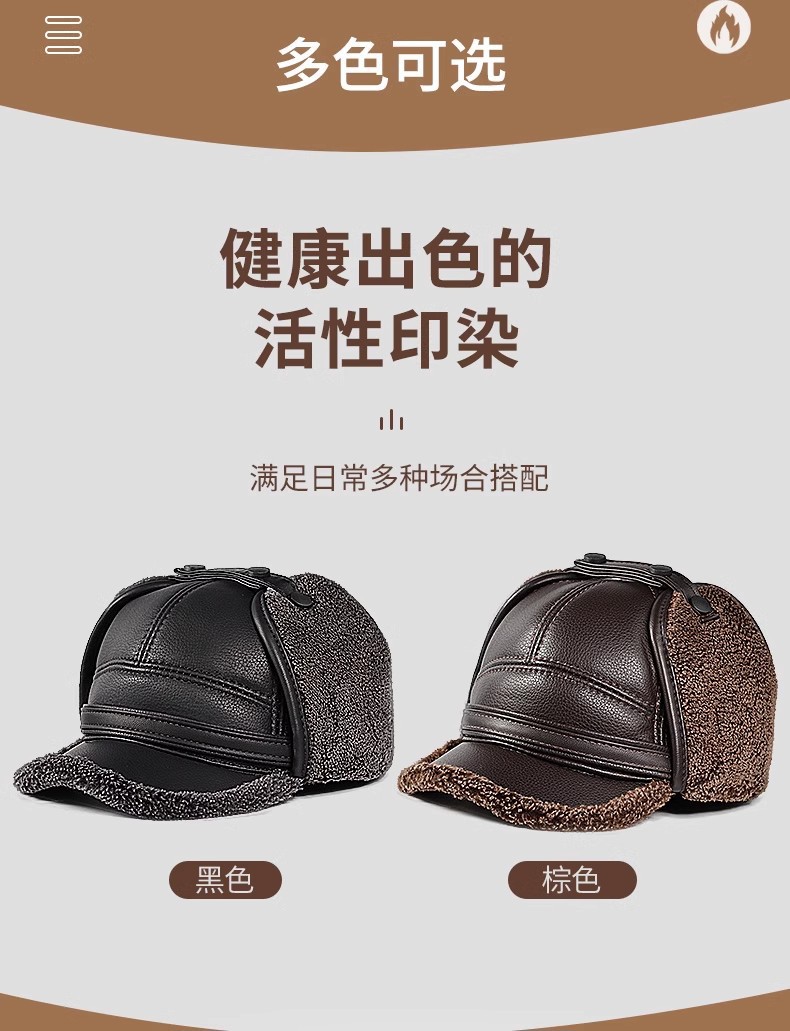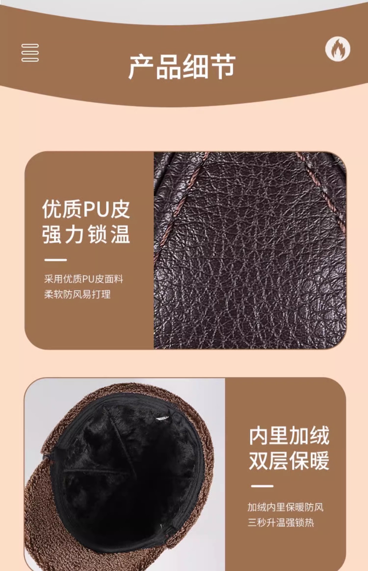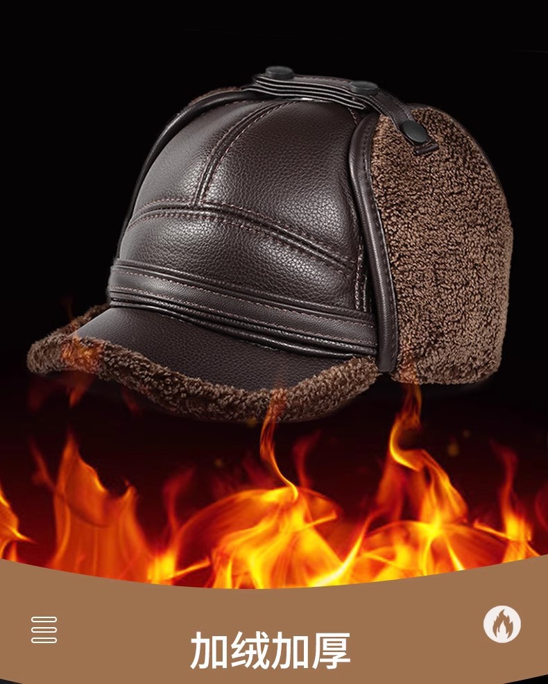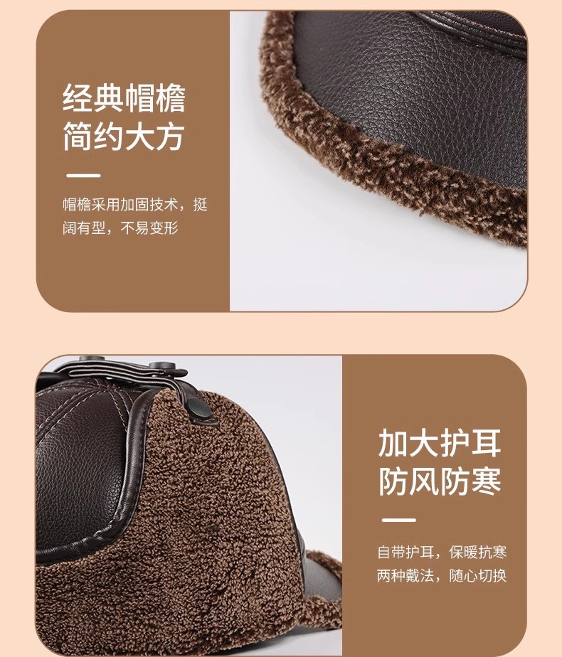 北極絨毛冬中高年お父さん雷鋒帽男冬耳保護保温老人鴨舌帽冬帽子