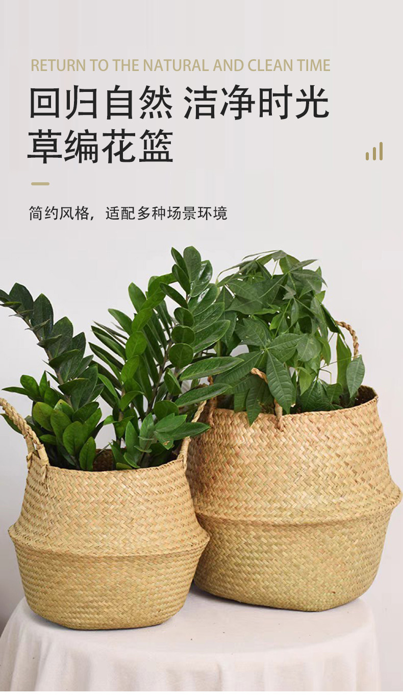 大腹かご草編み植木鉢レトロ海草編み花かご天国鳥琴葉亀背イケア折り畳み収納かご