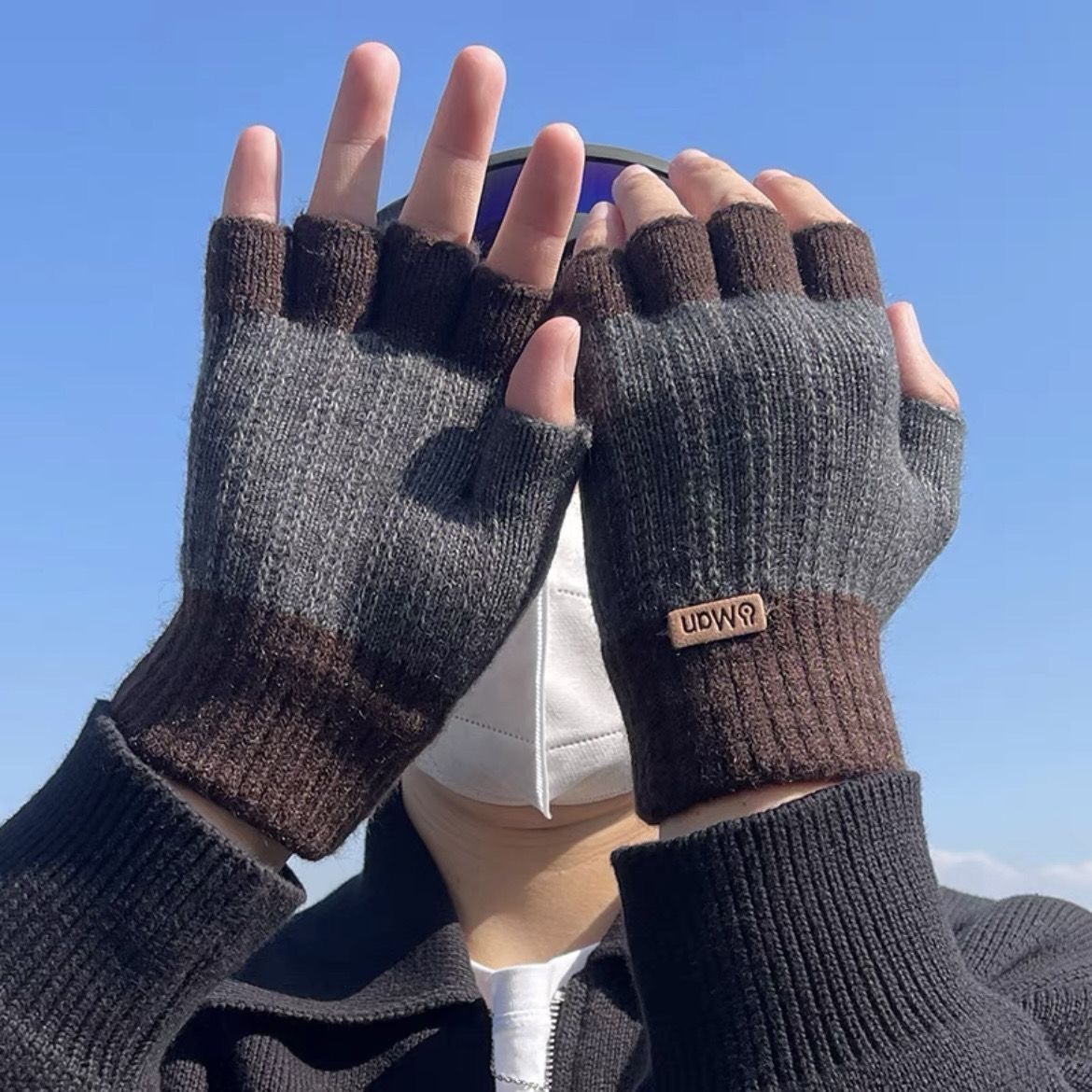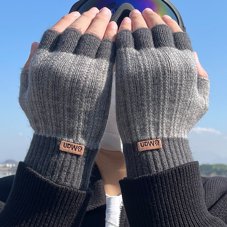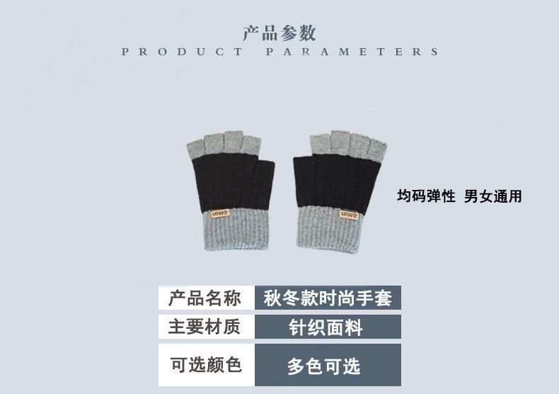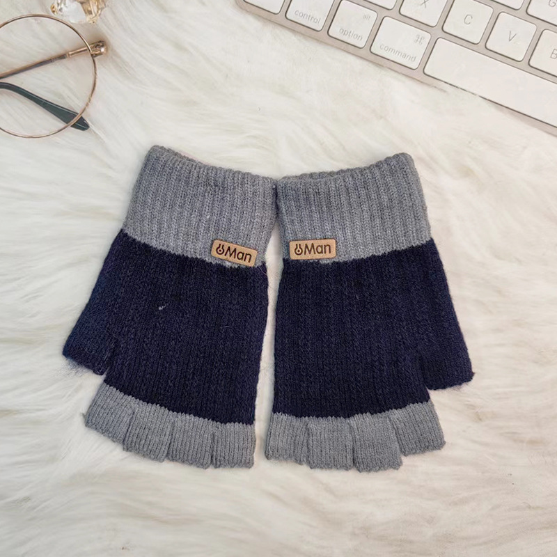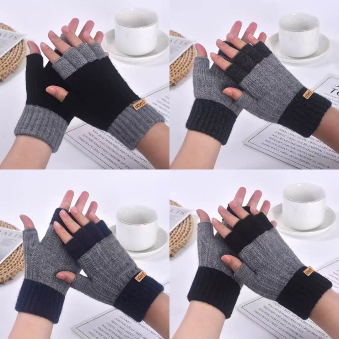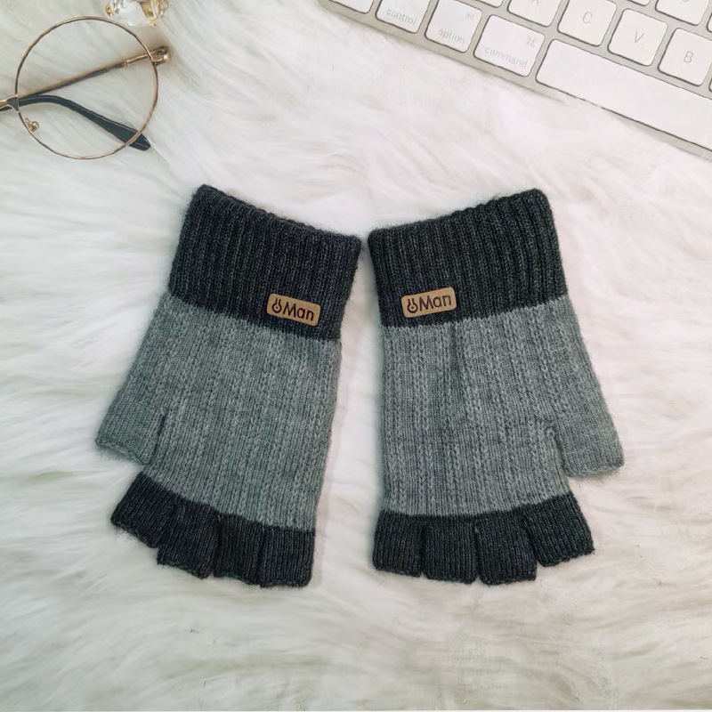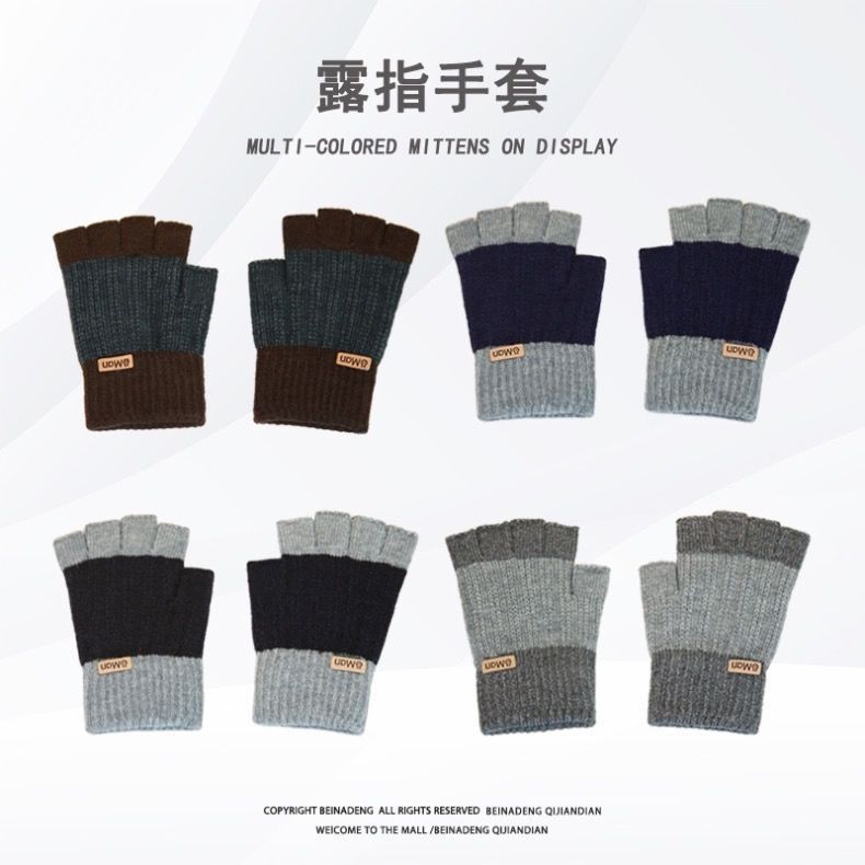 保暖手套拼色半指男士冬季保暖针织毛线手套漏指触屏写字户外骑行