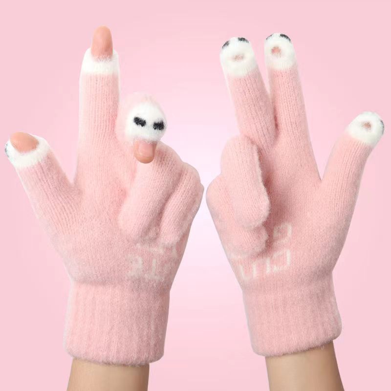 女性用フィンガーベアグローブ、ウール製、かわいい漫画風、学生向け、秋冬用、暖かい、韓国版、フィンガーベア、多用途、サイクリング、タッチスクリーン対応