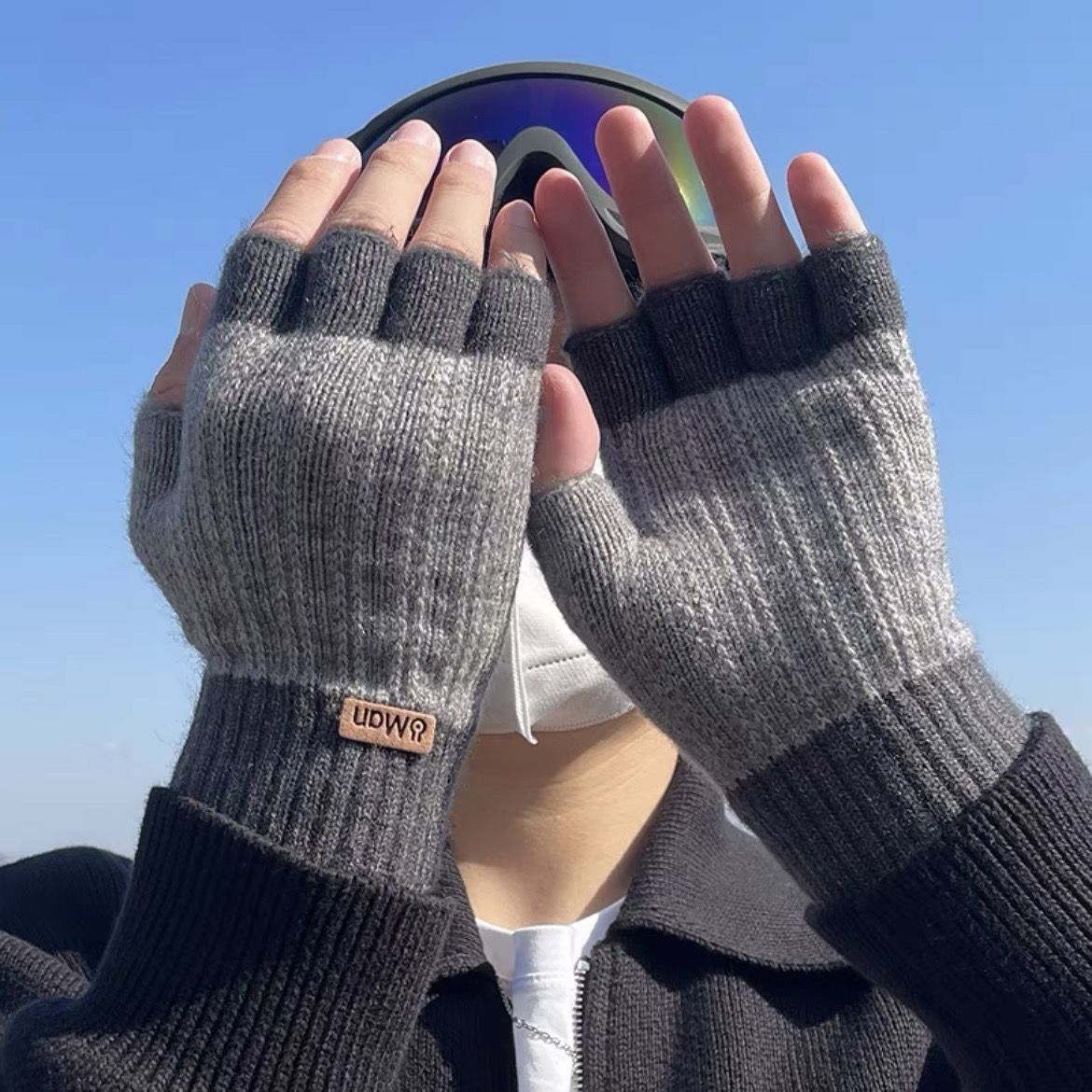 半分の指は全部純色の手袋を指します。学生は冬に保温します。