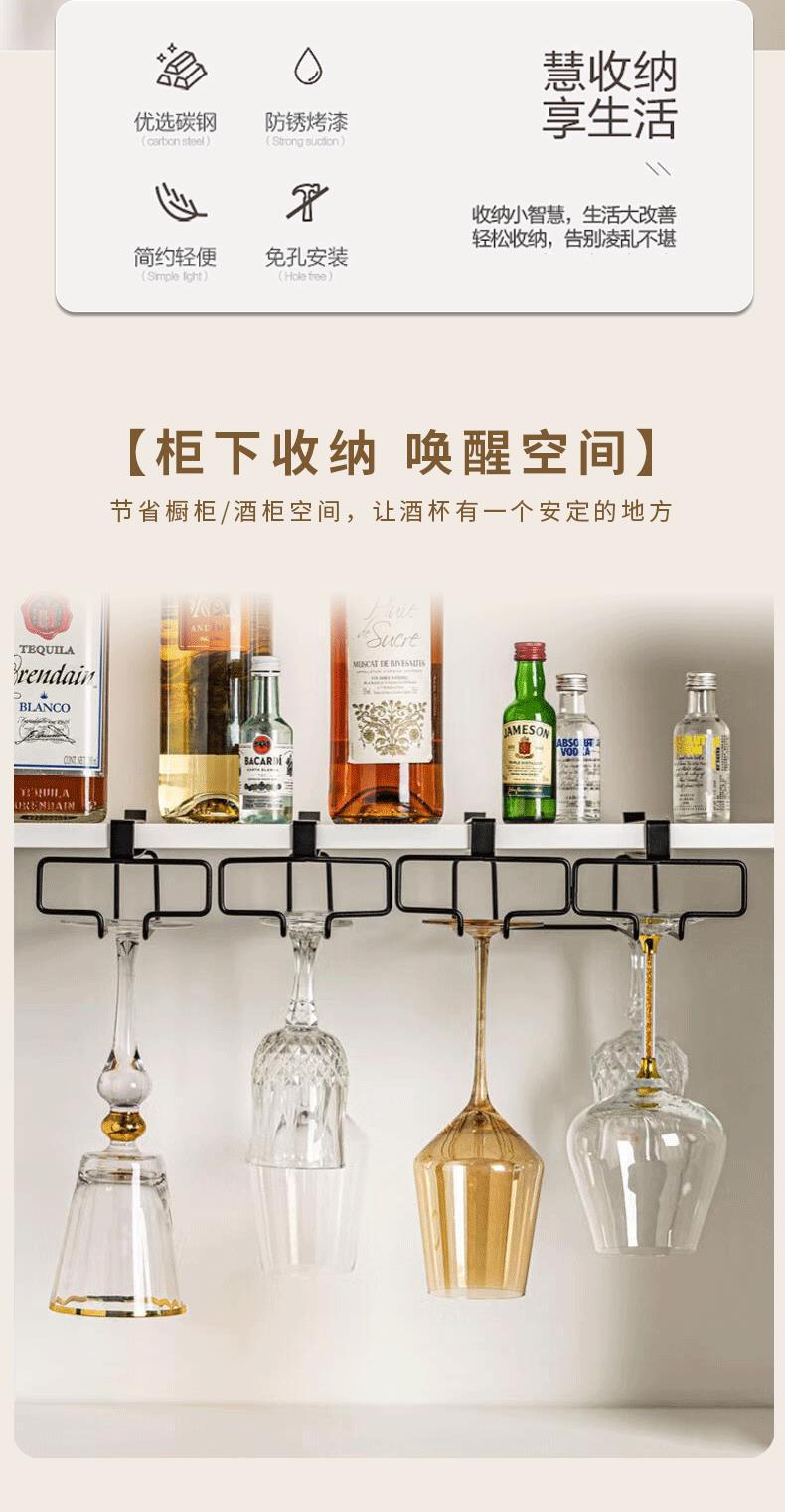 葡萄酒杯红酒杯架免打孔悬挂高脚杯橱柜家用高脚杯收纳架子置物架