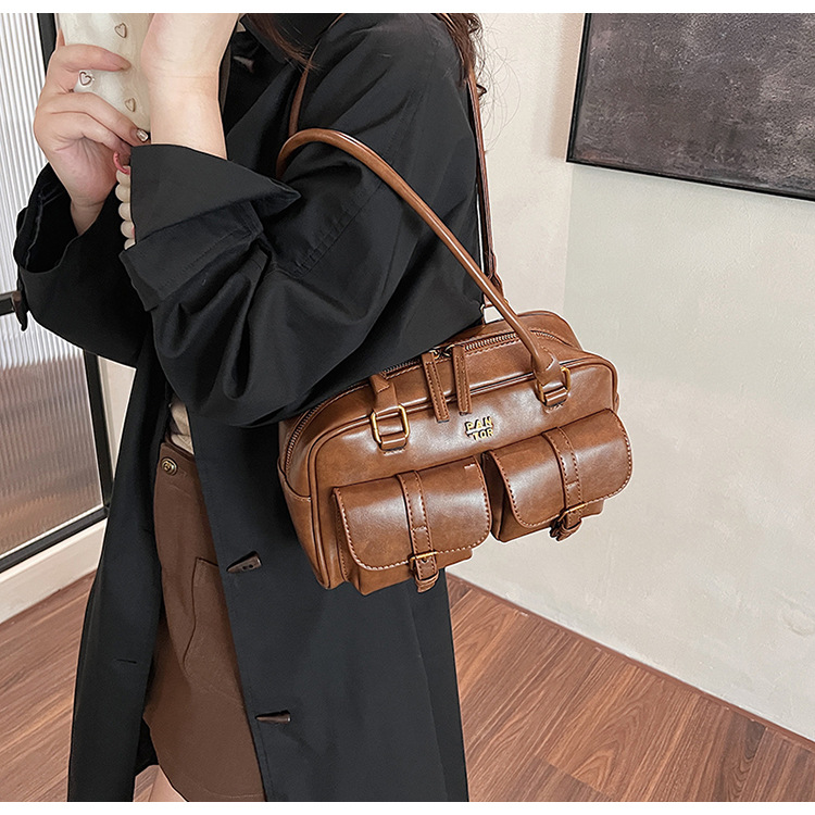 国境を越えた欧米の質感の女性の腋の下のバッグ2024秋の韓国系の新型puの多層の個性の斜め掛けのシンプルなショルダーバッグ