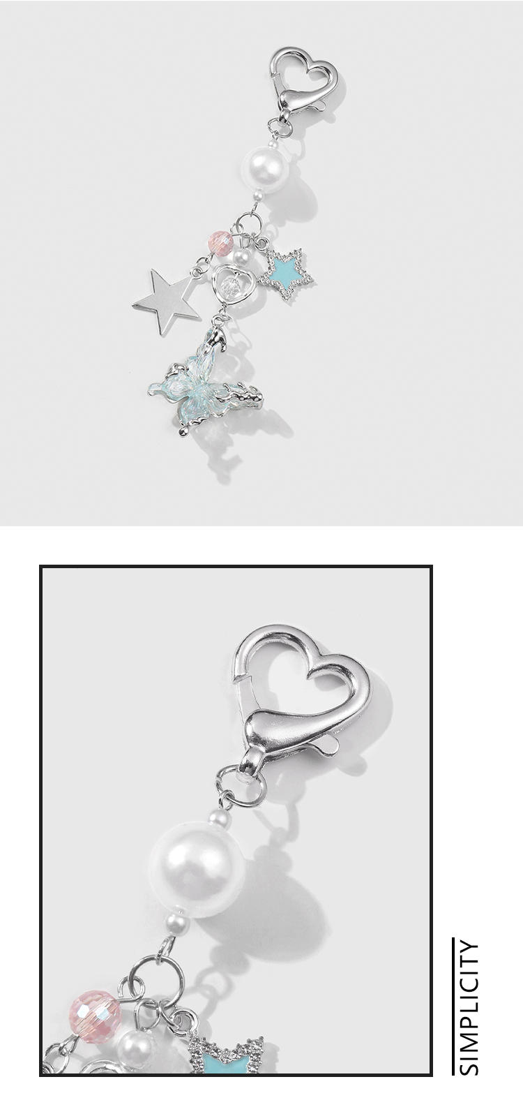 国境を越えて起爆したy 2k洗練された軽豪華な銀色の愛チェーンは真珠蝶星ペンダントのキーホルダーに似せている