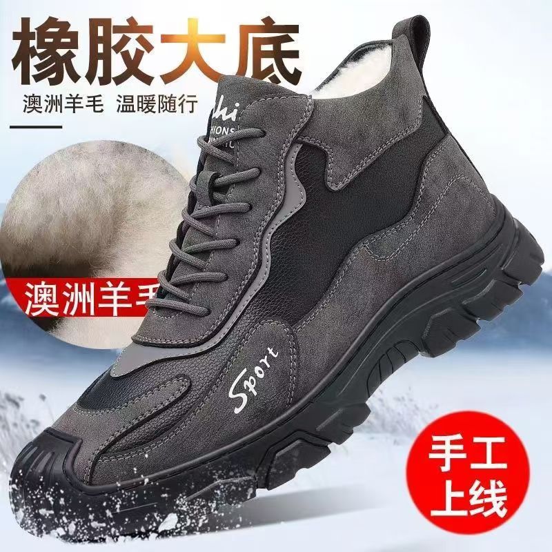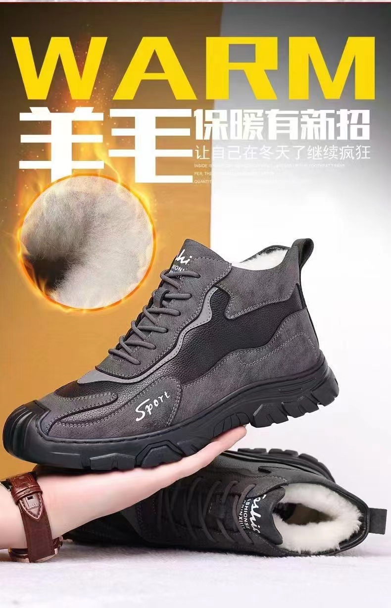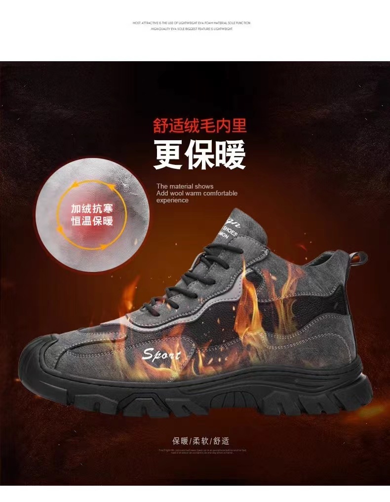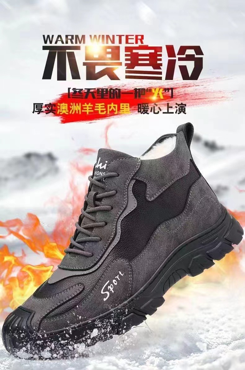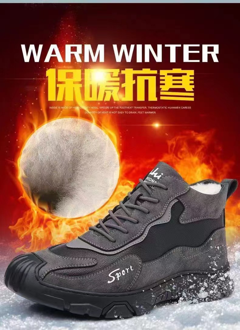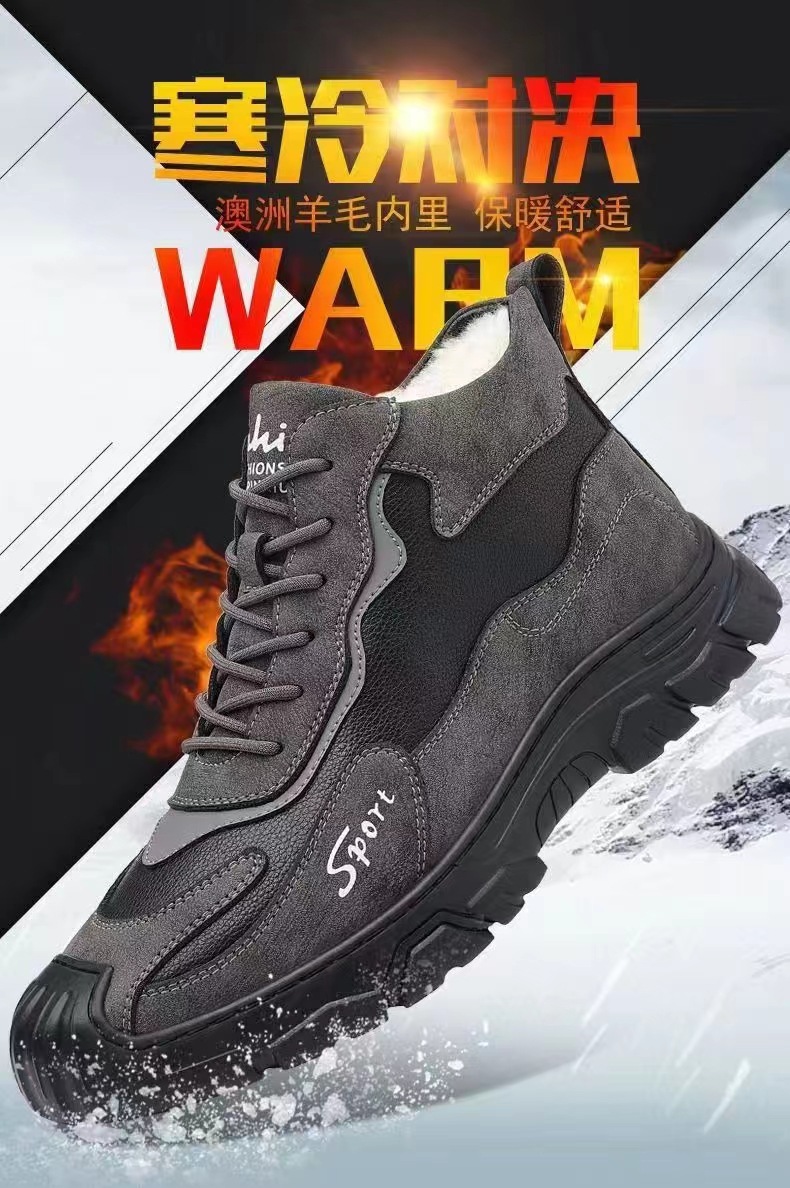 冬のベルベット労働保険靴ファッション工装靴綿保温登山靴軟底通勤仕事男性靴クロスボーダー