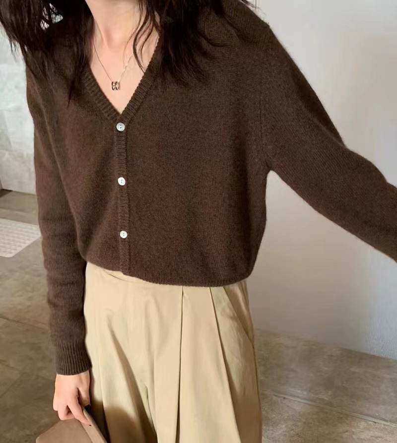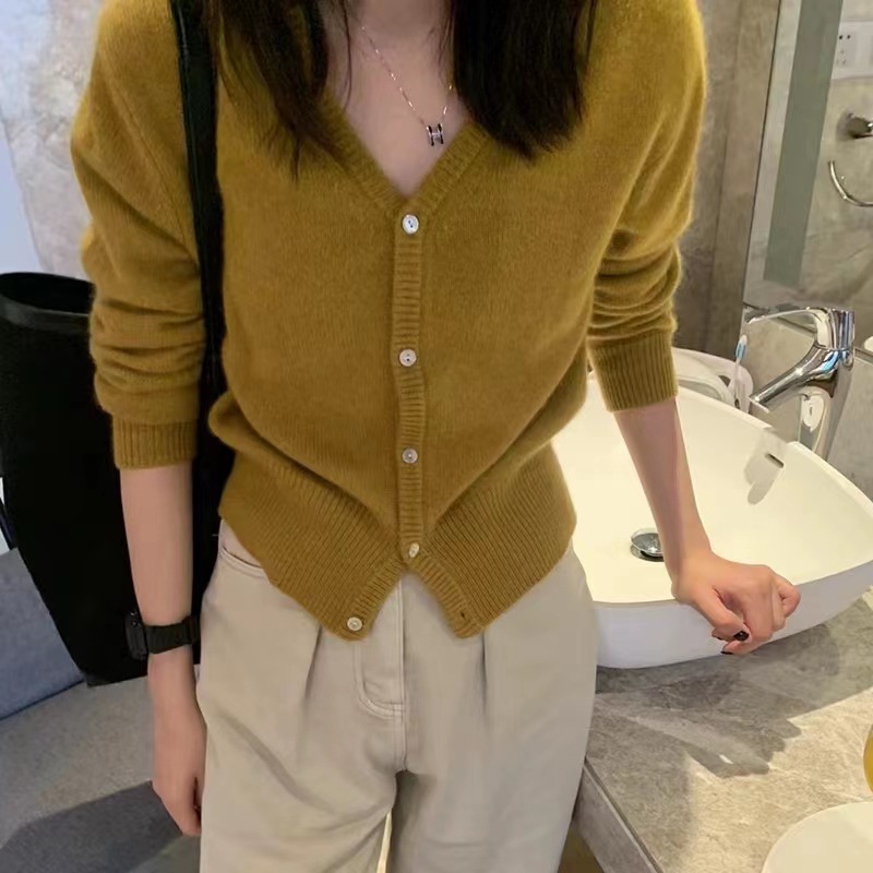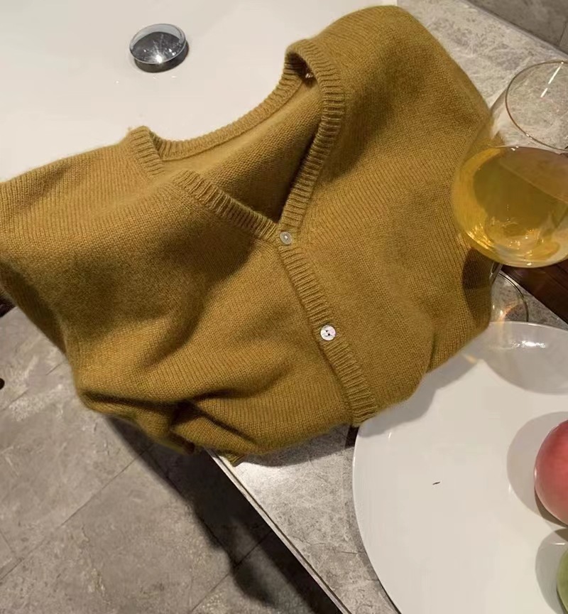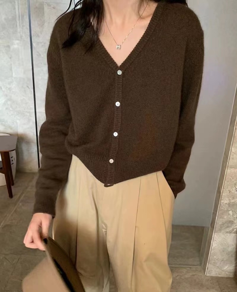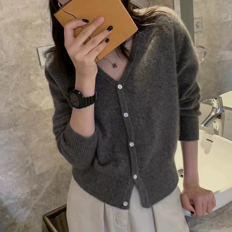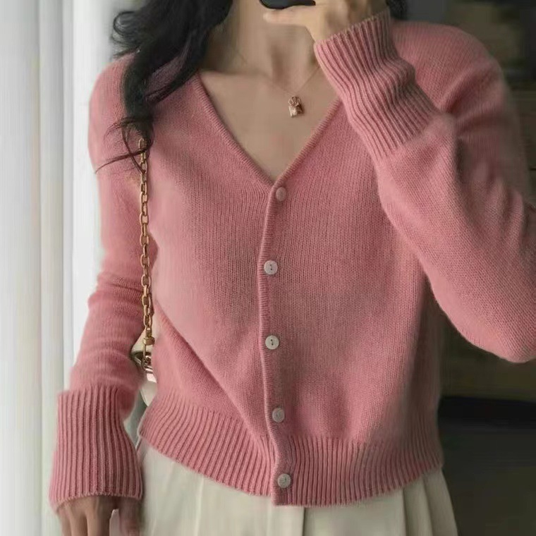 2025 秋冬新作ウールカーディガンレディース V ネックルーズショートカシミヤカシミヤセータージャケットジェントルシ