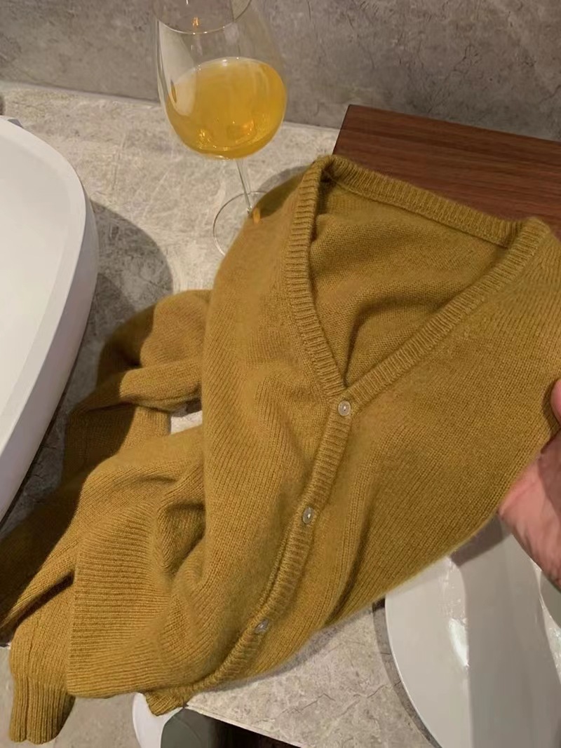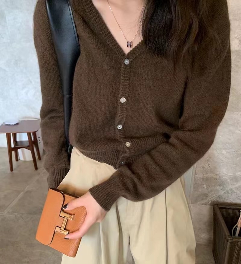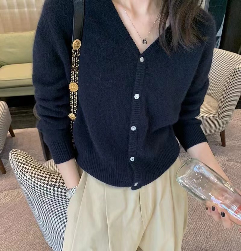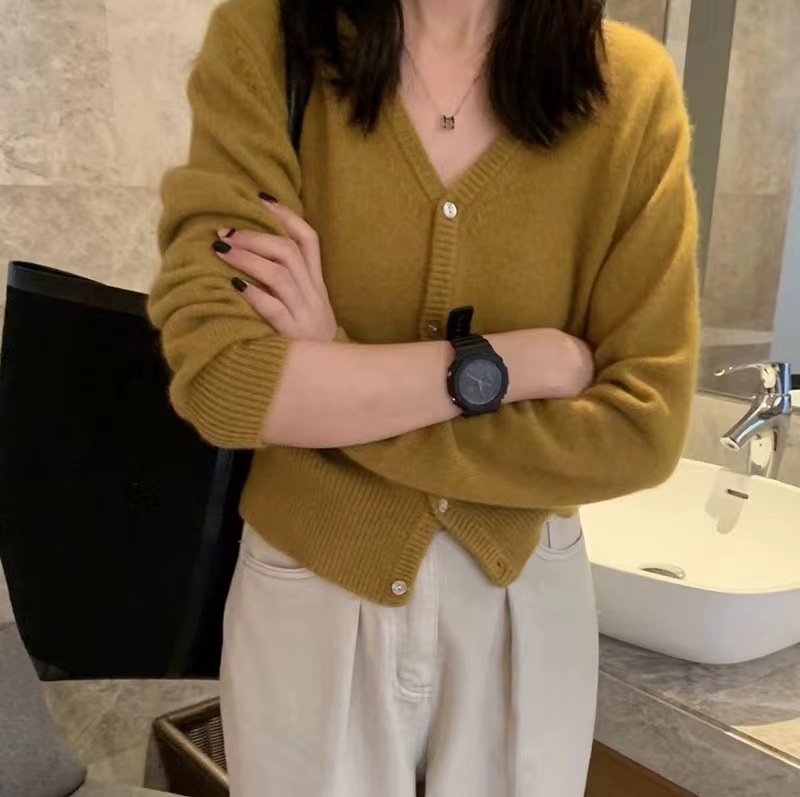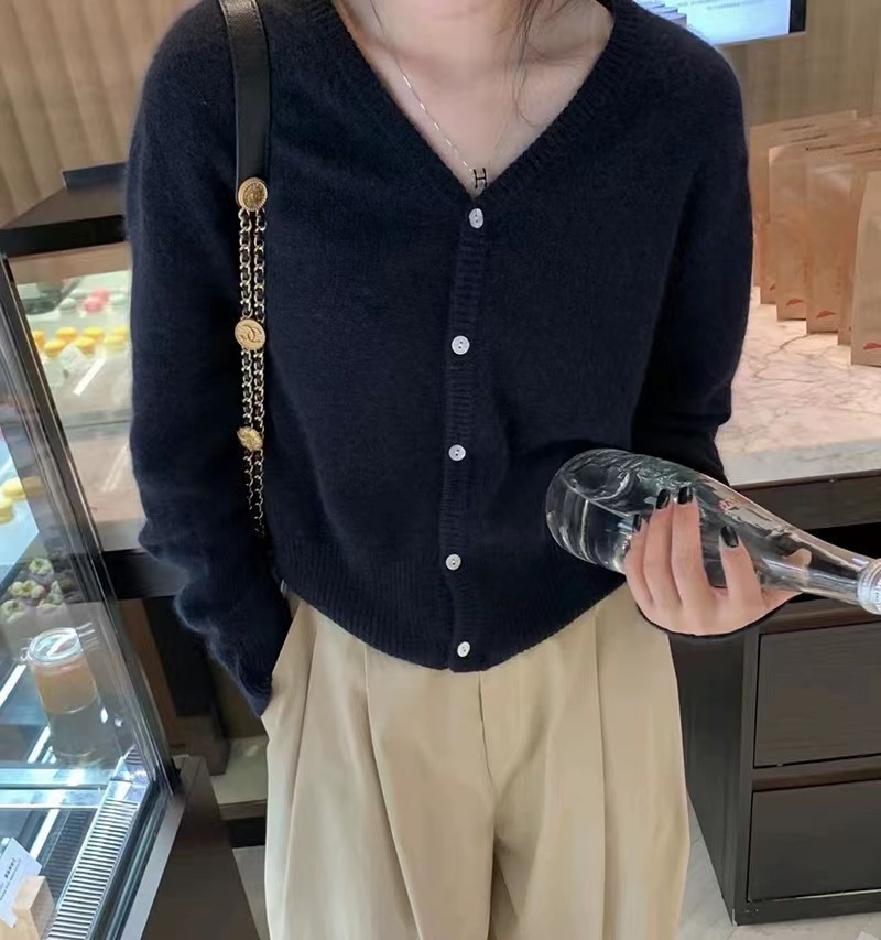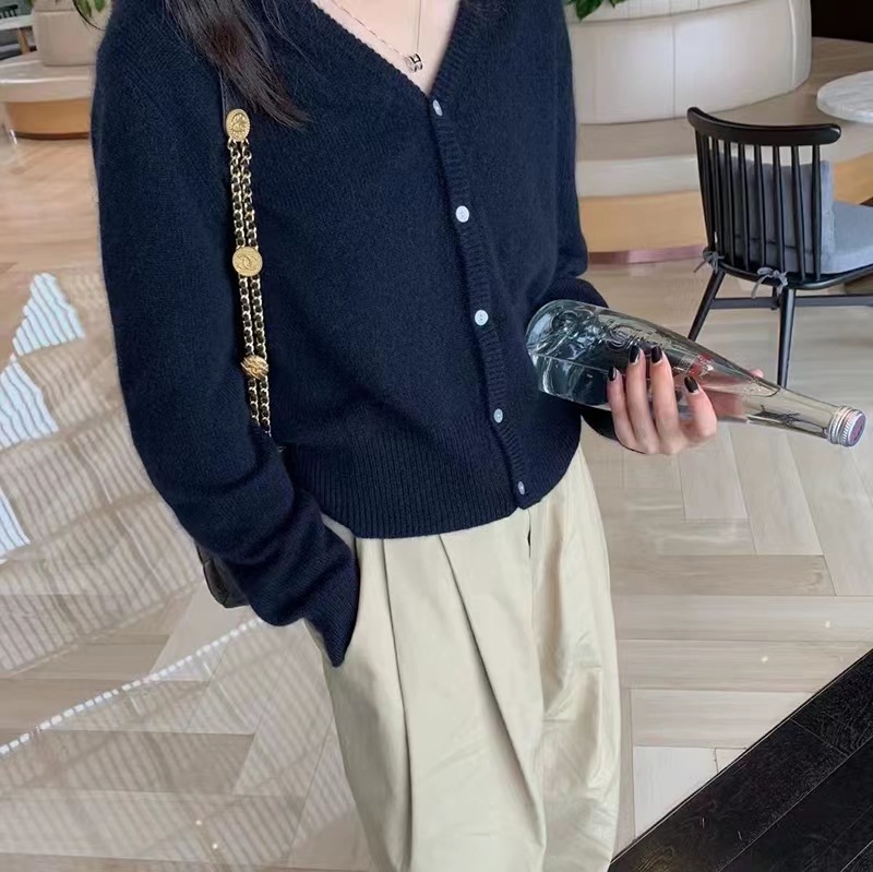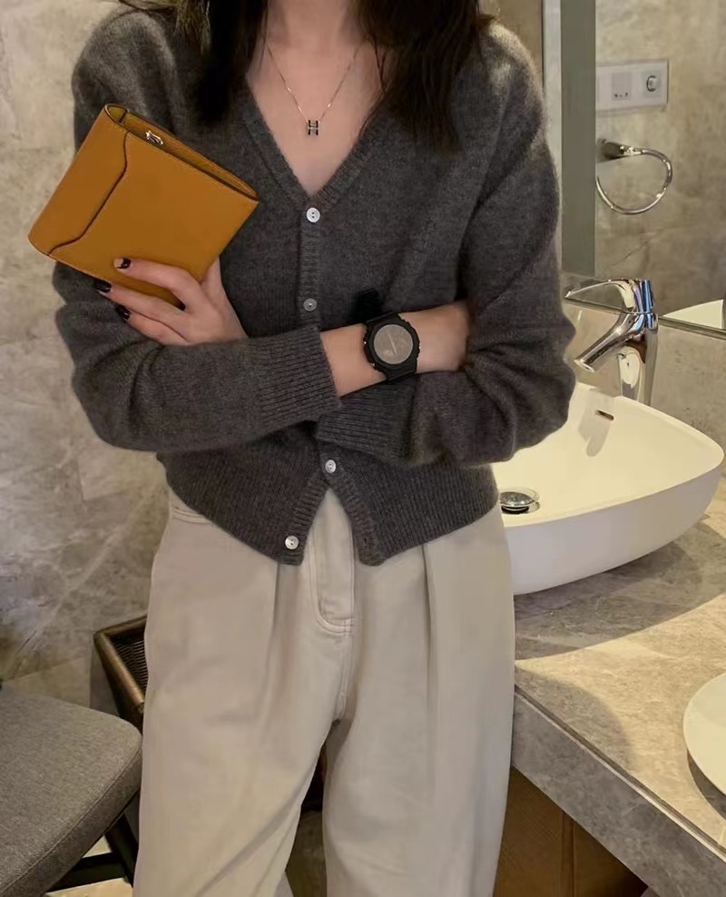 2025 秋冬新作ウールカーディガンレディース V ネックルーズショートカシミヤカシミヤセータージャケットジェントルシ
