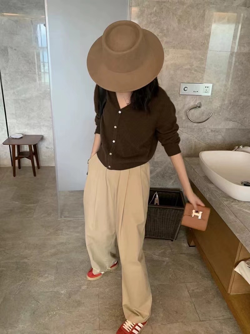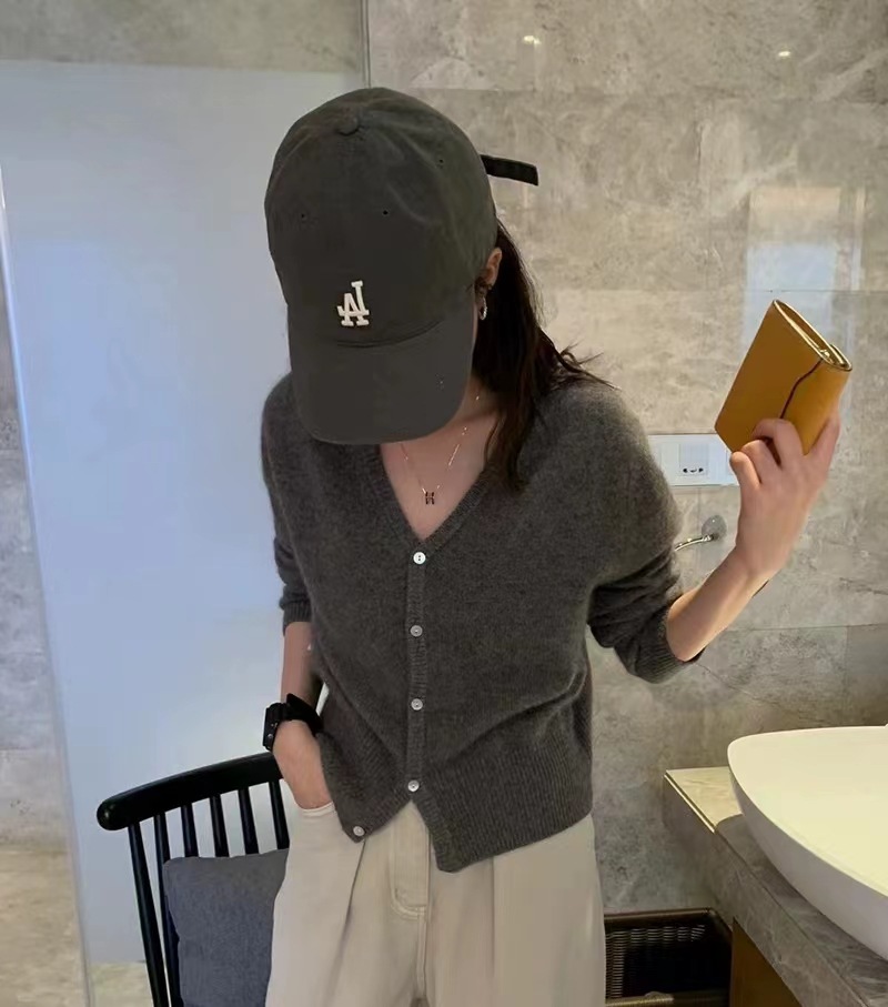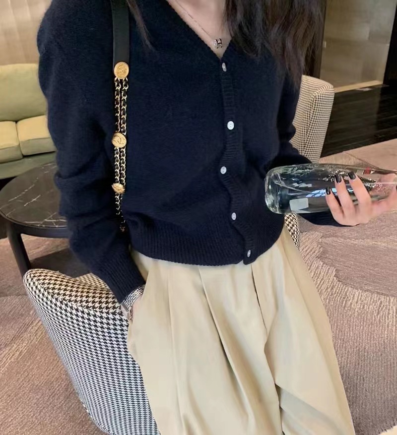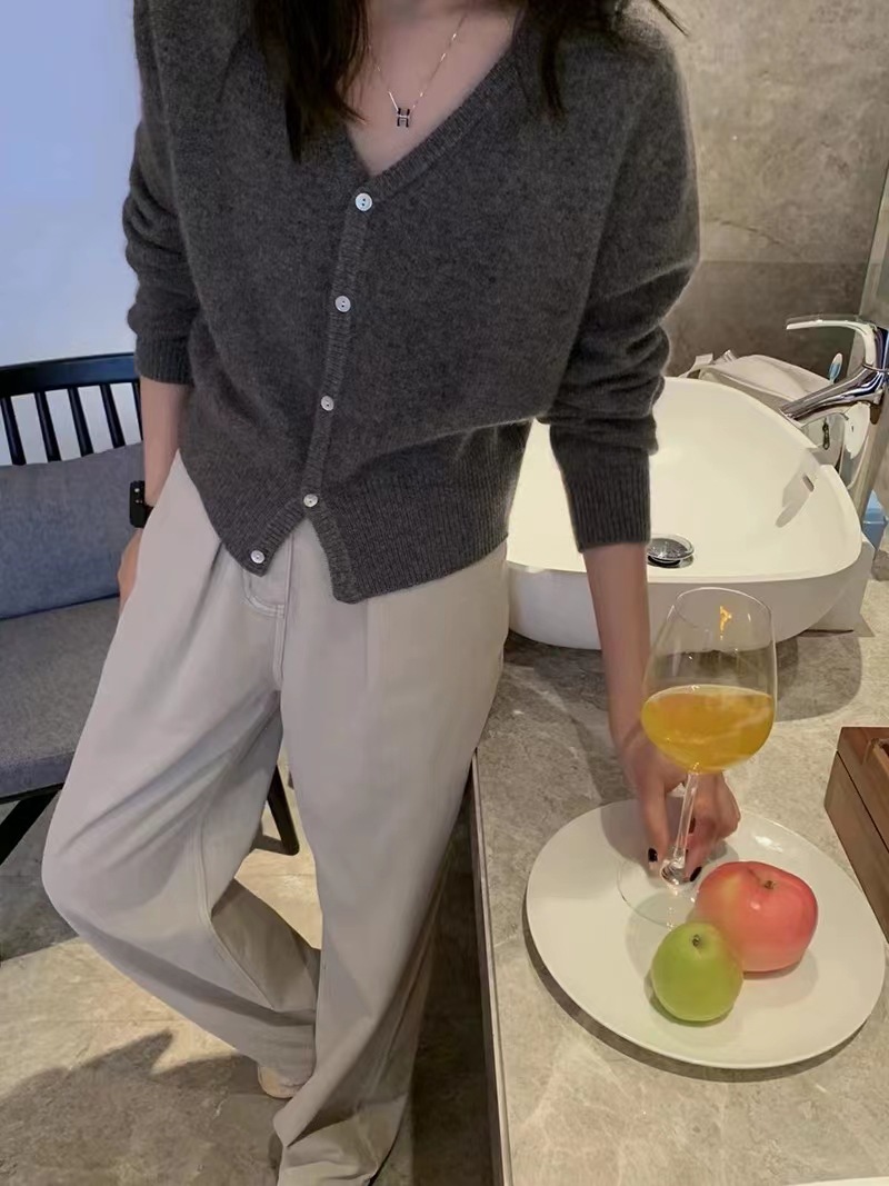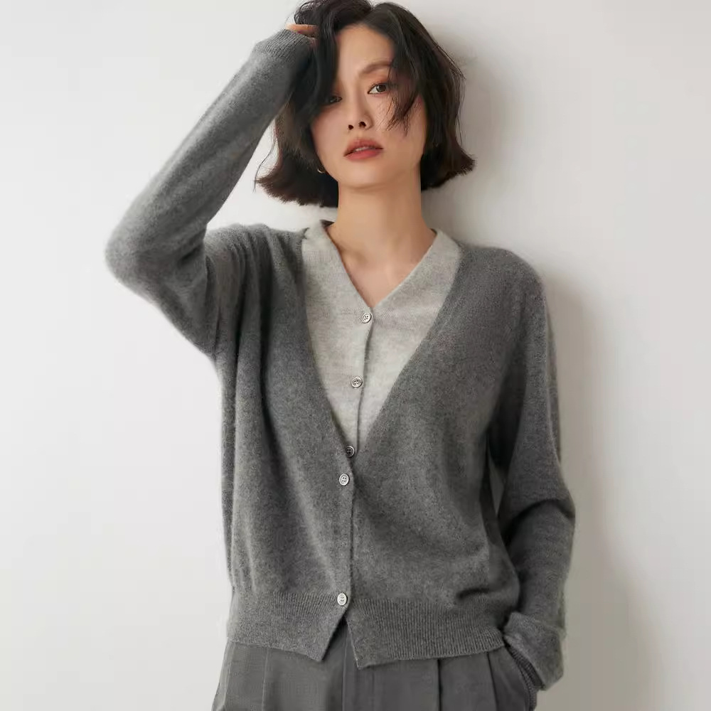 2025 秋冬新作ウールカーディガンレディース V ネックルーズショートカシミヤカシミヤセータージャケットジェントルシ