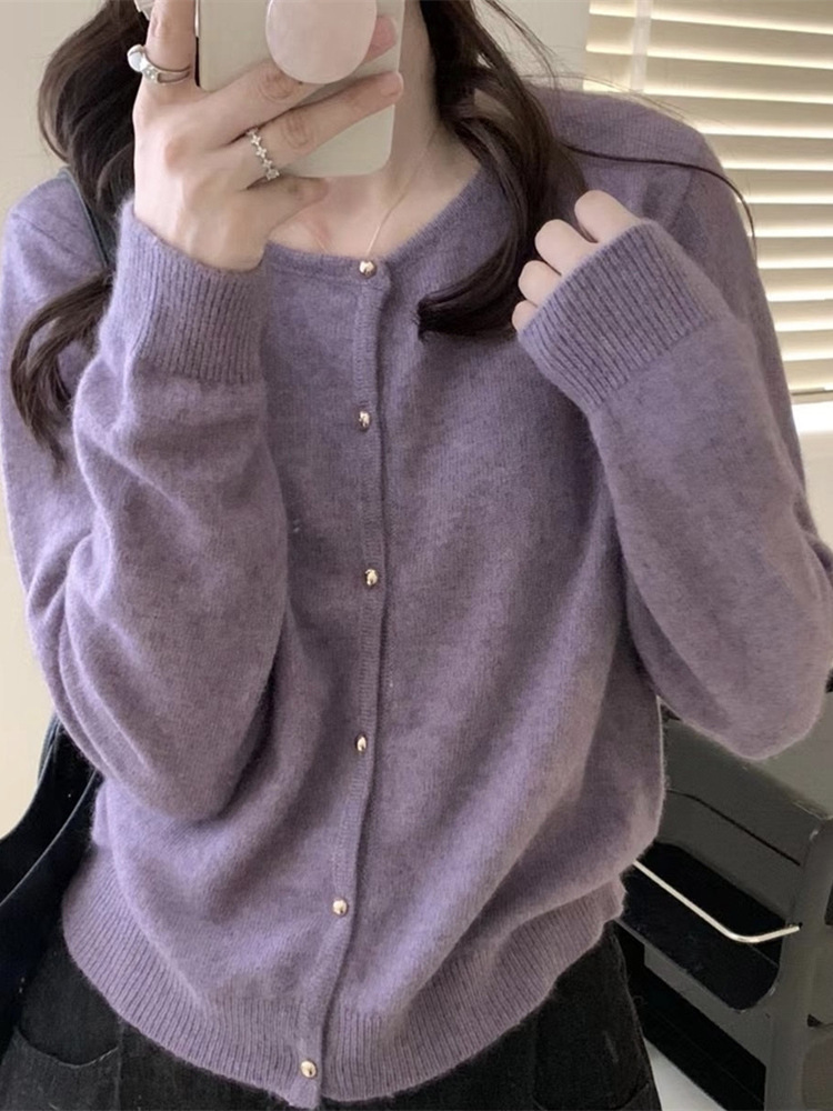韓国版 2025 秋冬新作多用途ウールカーディガンレディースラウンドネックショートルーズトップウールニットジャケット