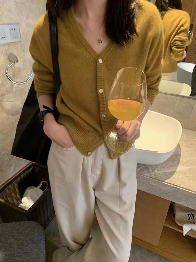 2025秋冬 ウールニットカーディガン レディース Vネック 韓国 東大門風 ゆったりセーターコート カジュアルトップス アウター