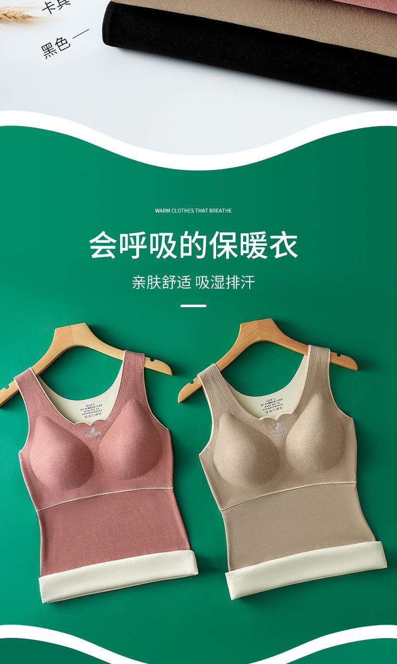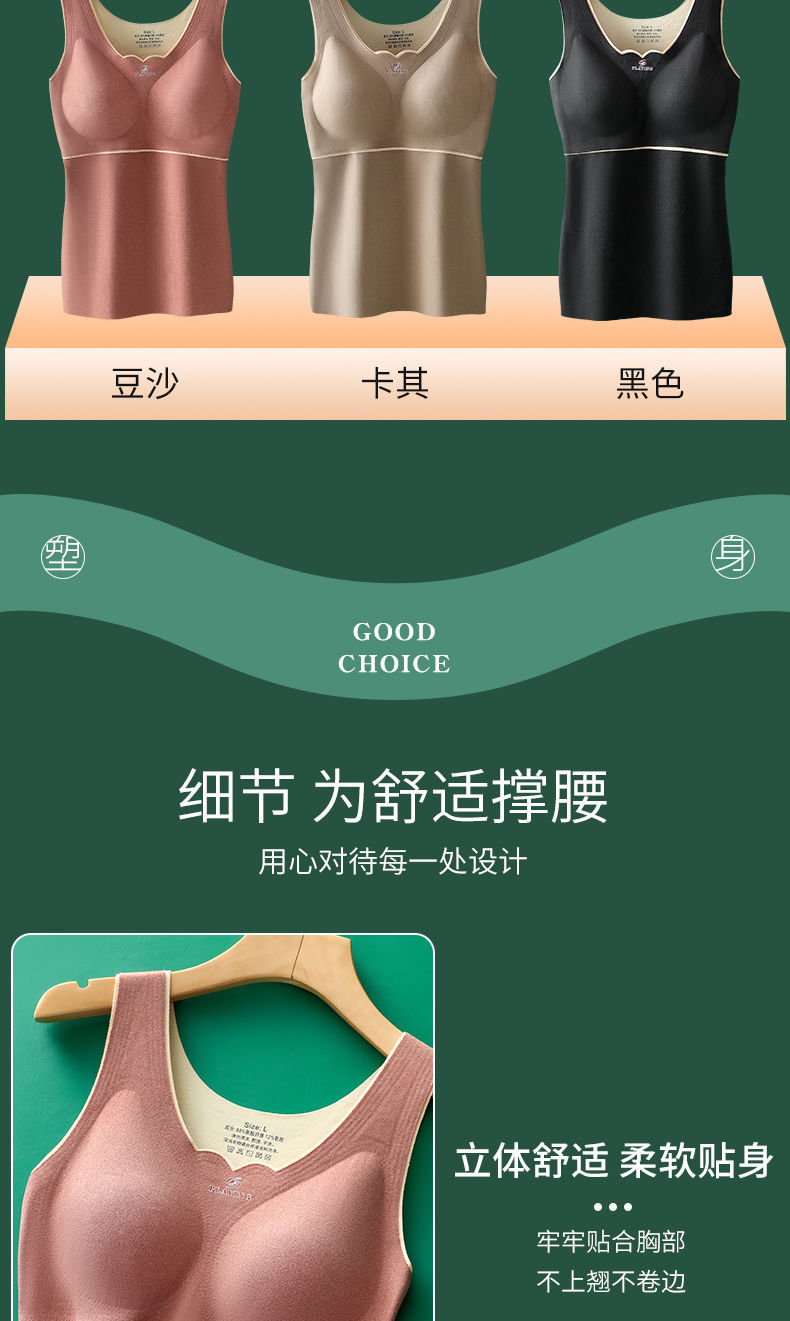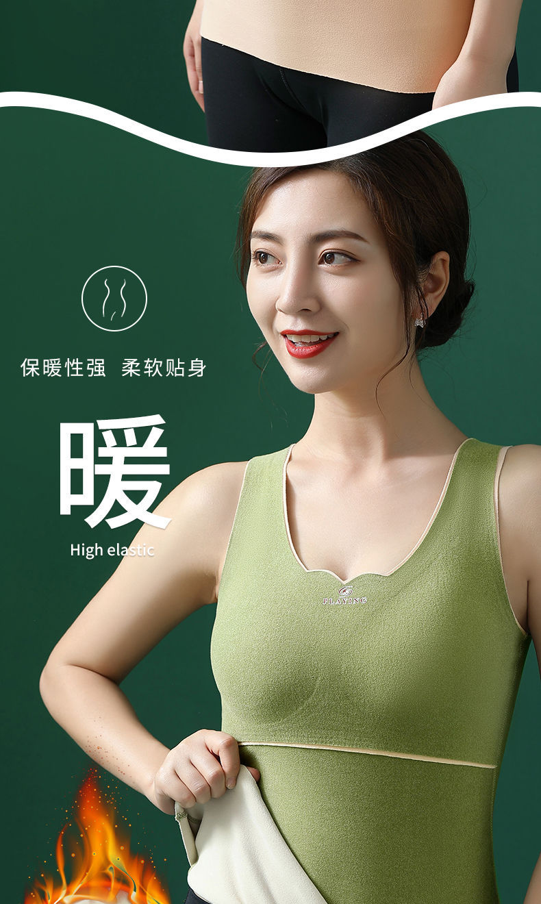 秋冬季德绒无痕保暖背心女自发热双面加绒加厚打低衫带胸垫内衣女