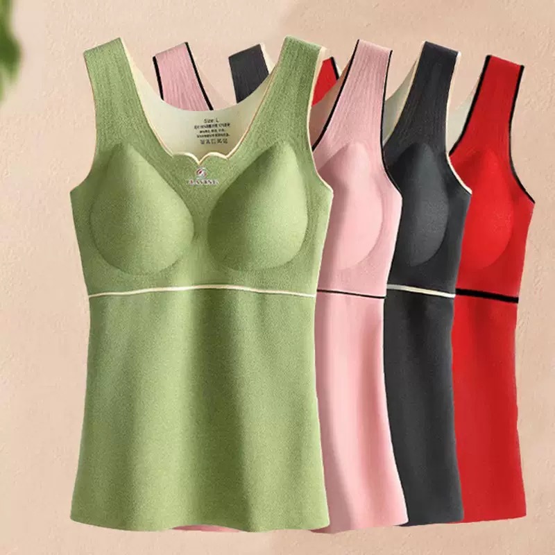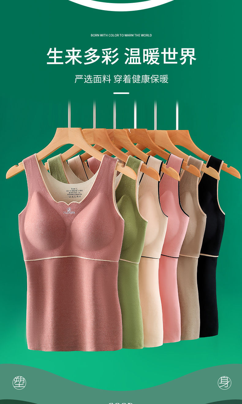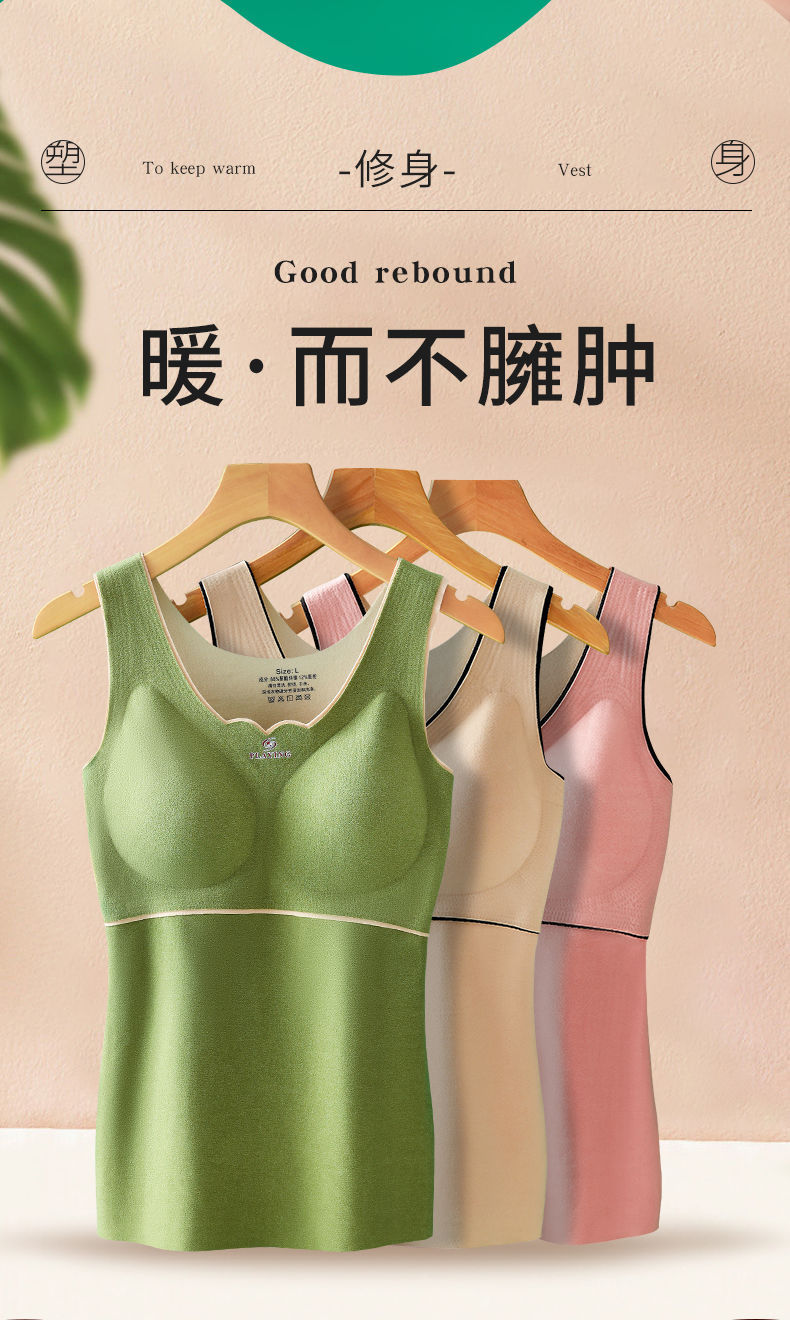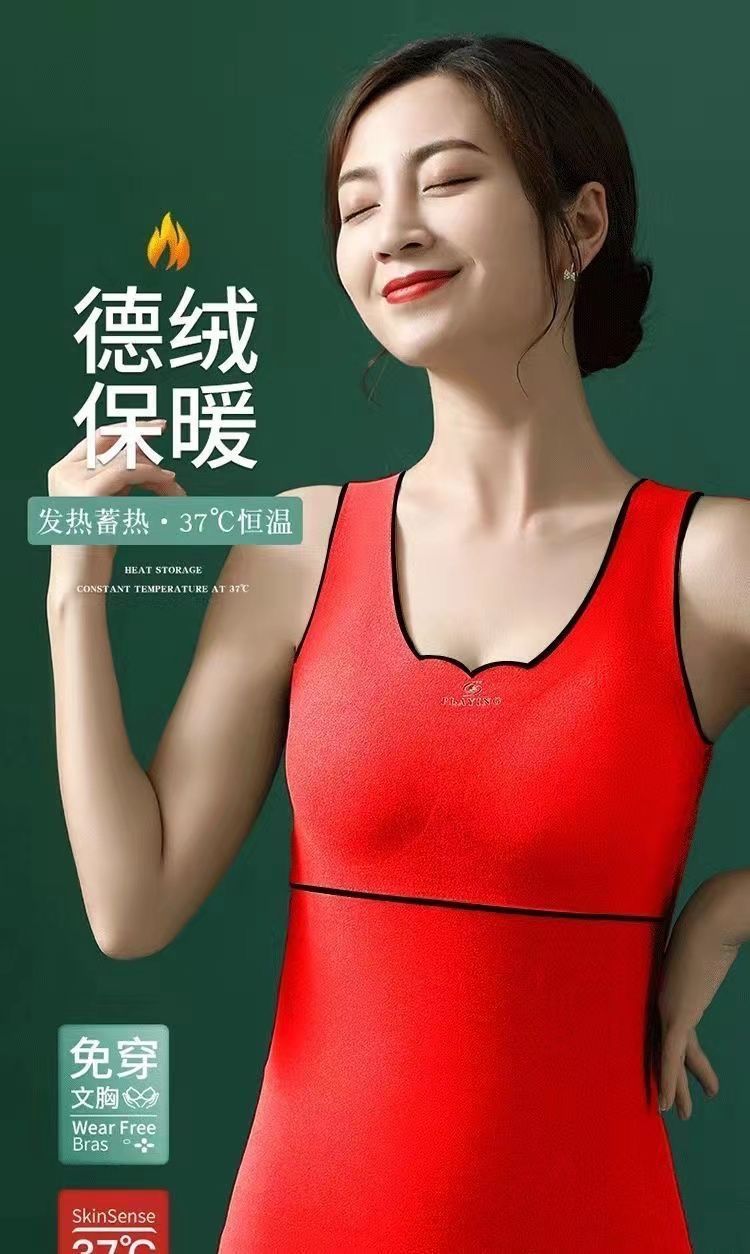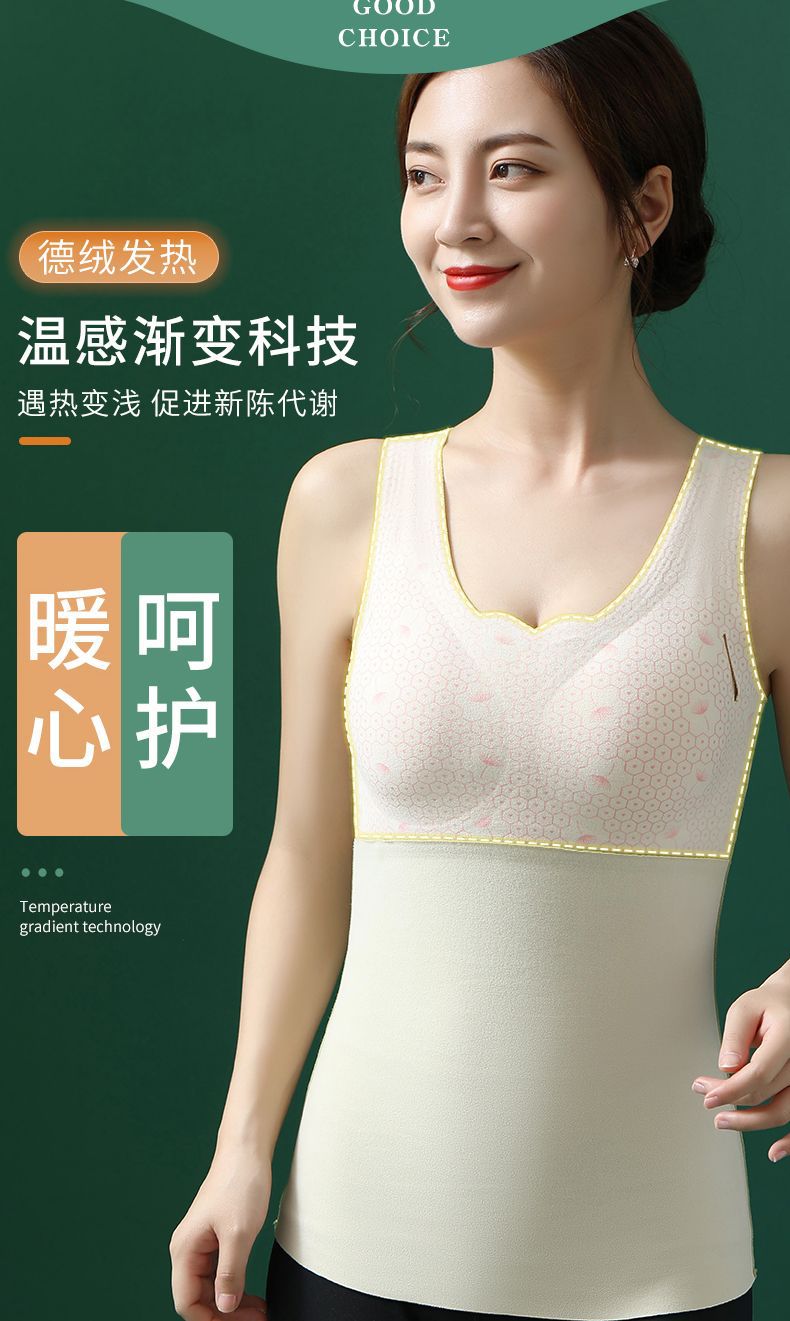 爆款德绒自发热保暖背心加绒加厚自带胸垫保暖内衣秋冬季打底衫女