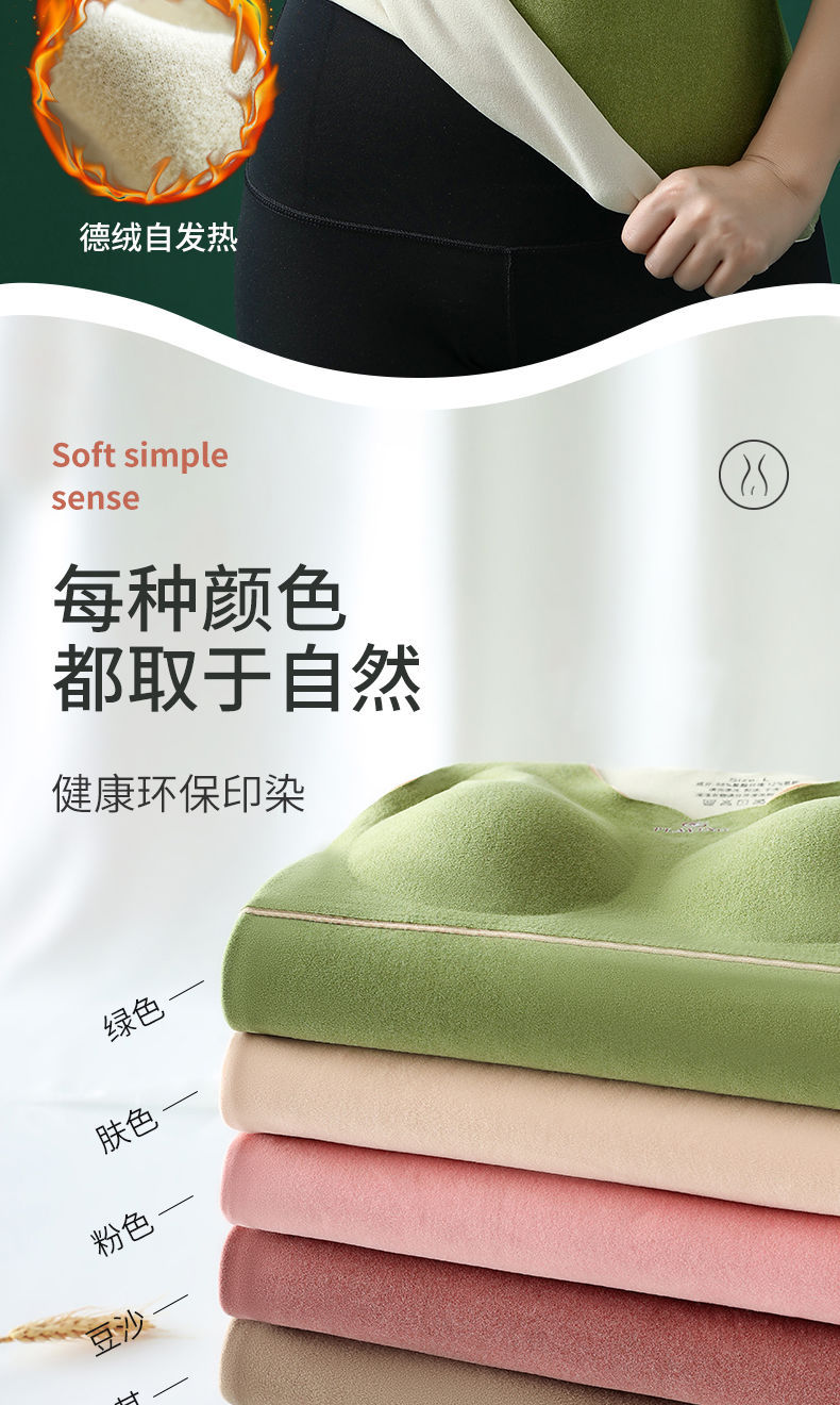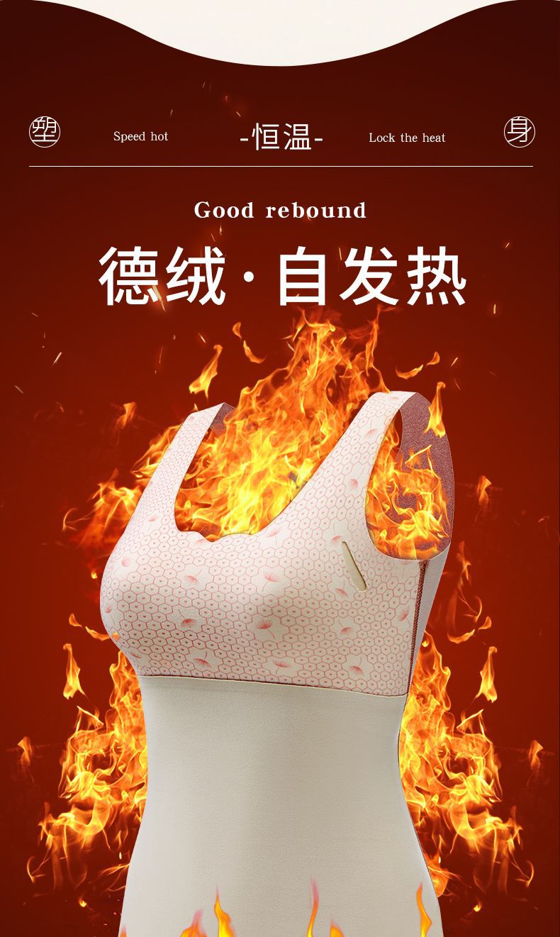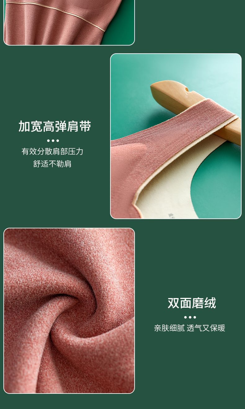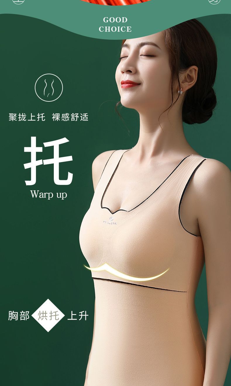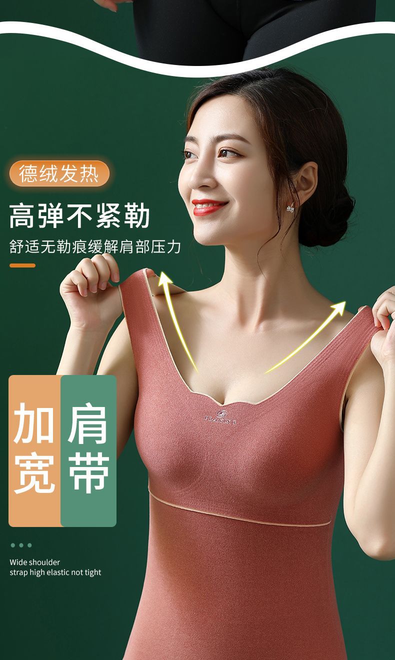 德绒秋冬保暖内衣秋衣背心女加绒加厚带胸罩一体套装文胸上衣发热