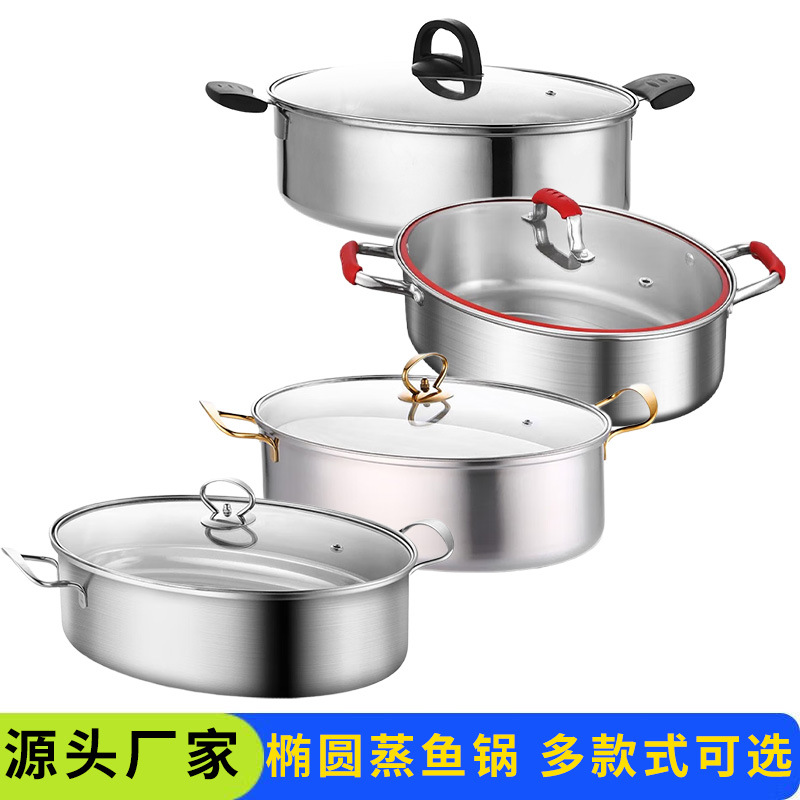304ステンレス蒸魚鍋多機能家庭用特大サイズ多層スープ蒸鍋楕円魚鍋電磁炉共通