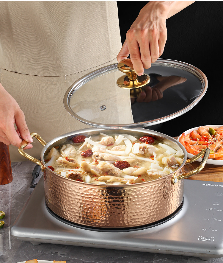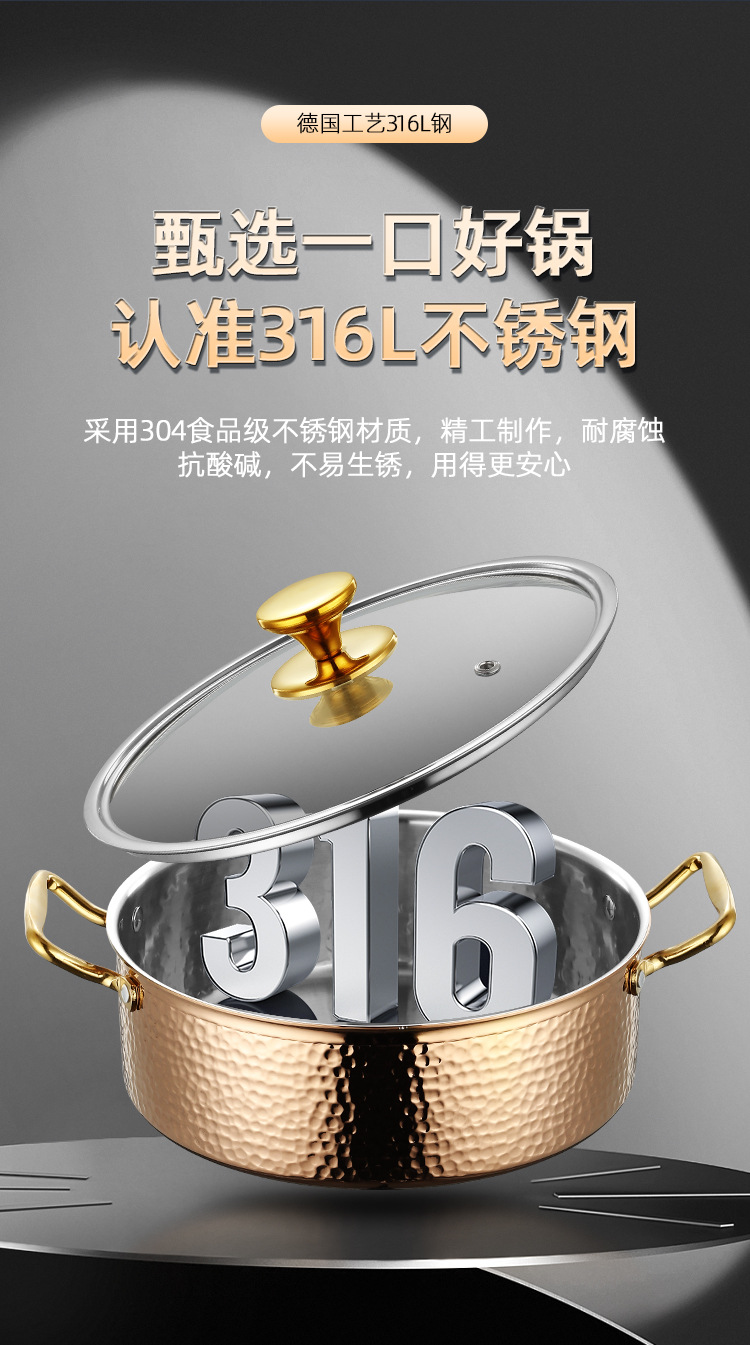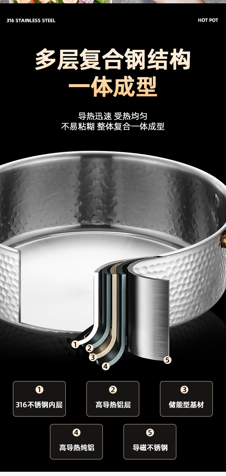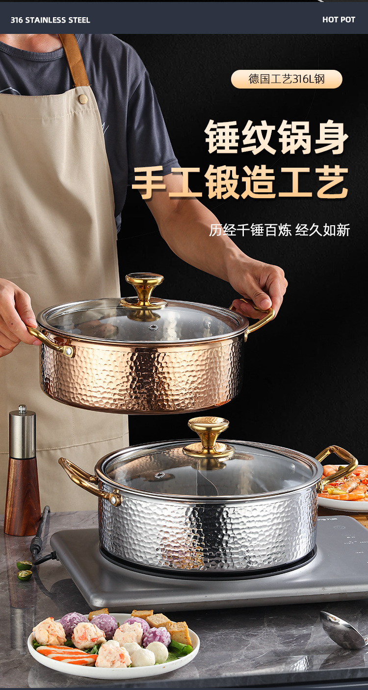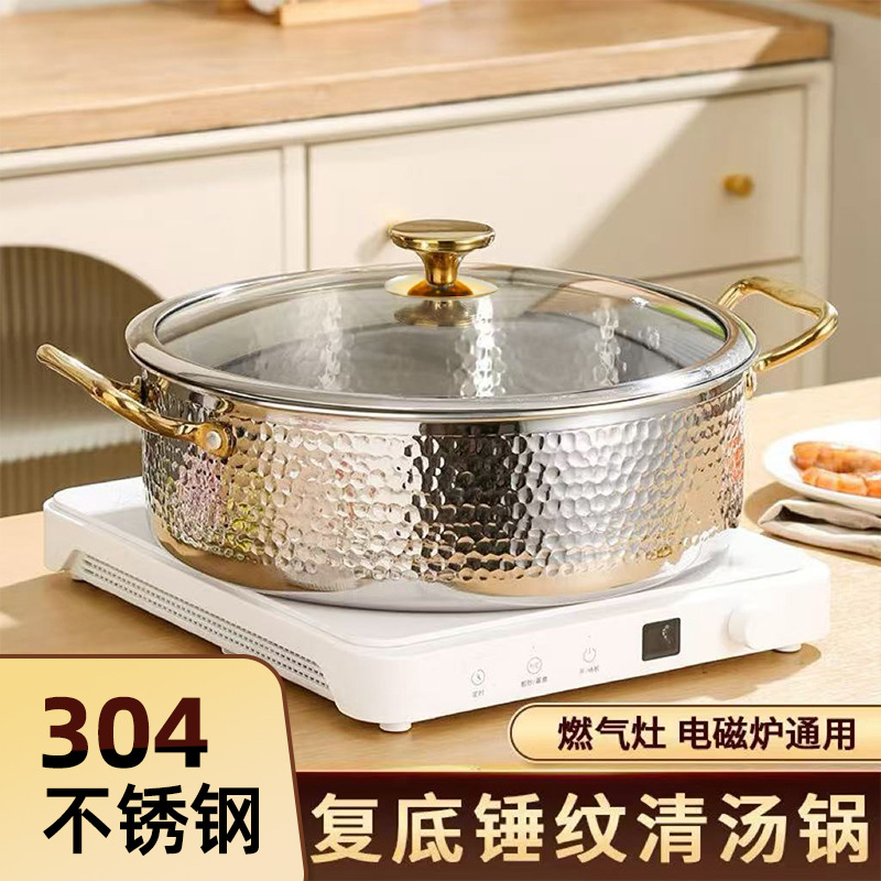 316ステンレスハンマー鴨鍋鍋家庭用電磁炉鍋多層鋼スープ鍋大容量火鍋盆