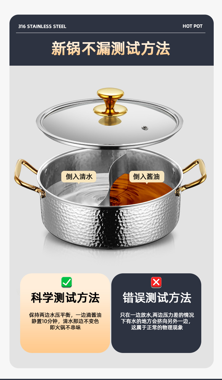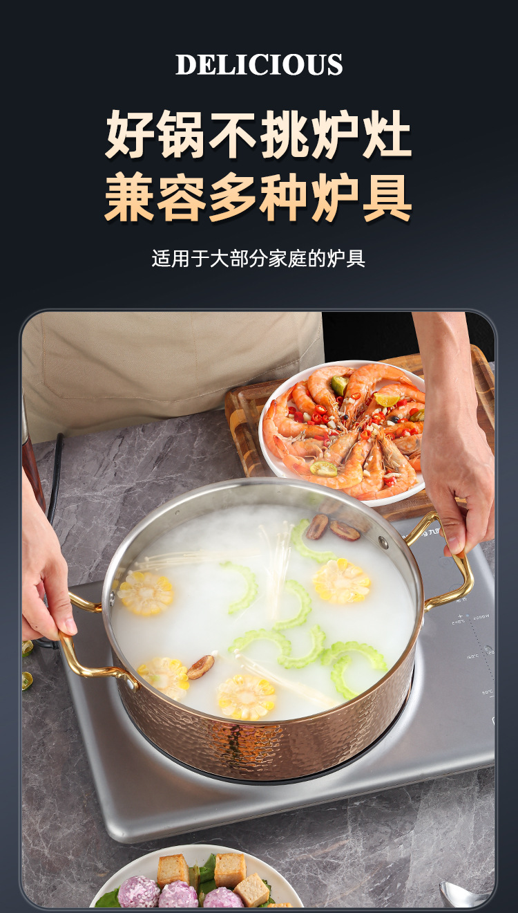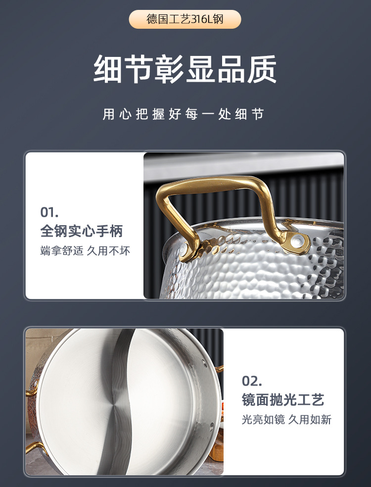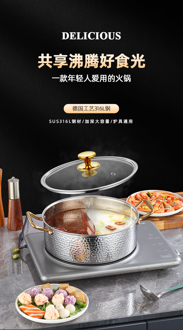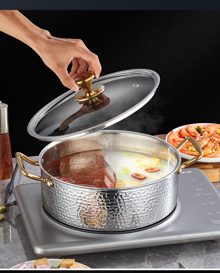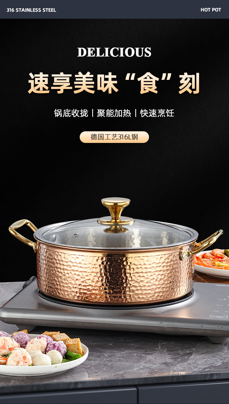 316ステンレスハンマー鴨鍋鍋家庭用電磁炉鍋多層鋼スープ鍋大容量火鍋盆