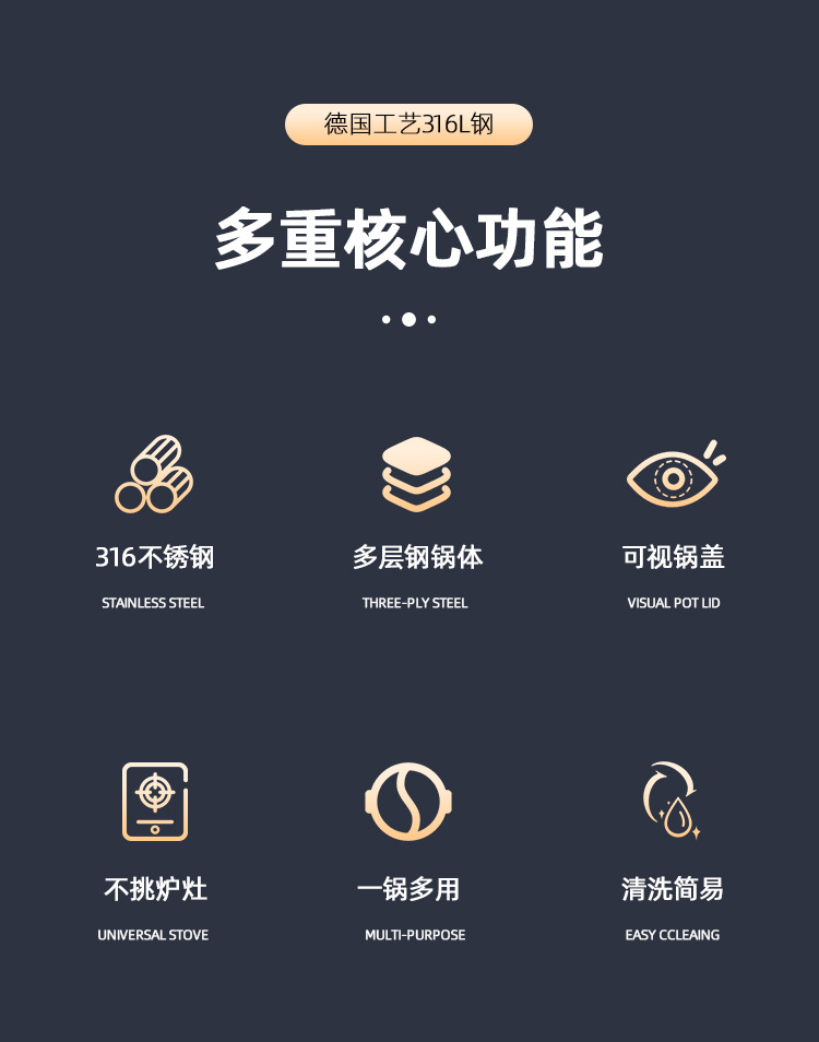 316ステンレス無コーティングチタン雪平鍋家庭用ミルク鍋多機能鍋炒め鍋トランペット一人鍋
