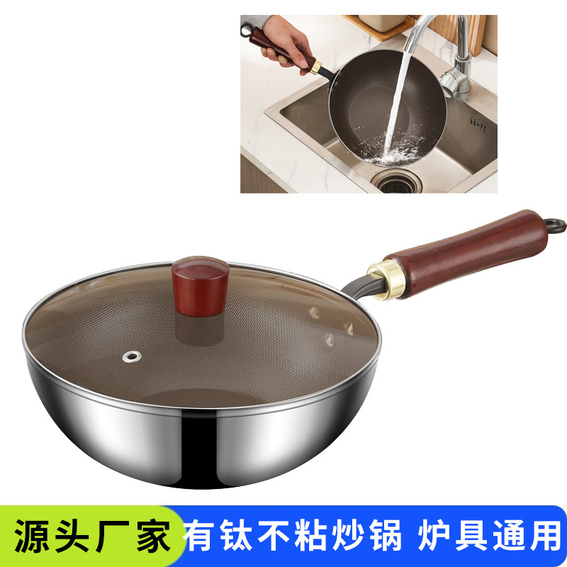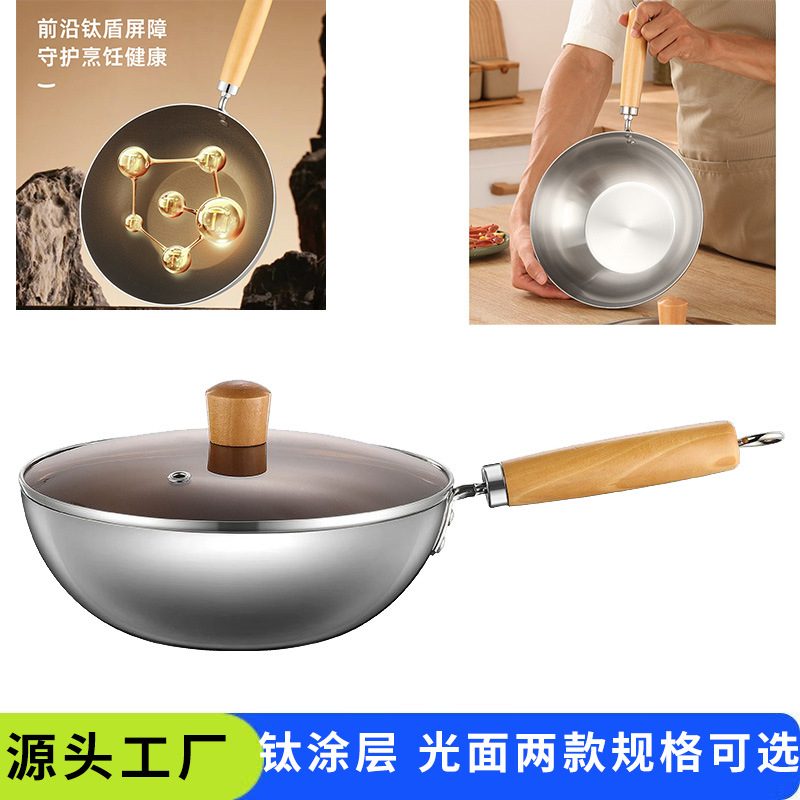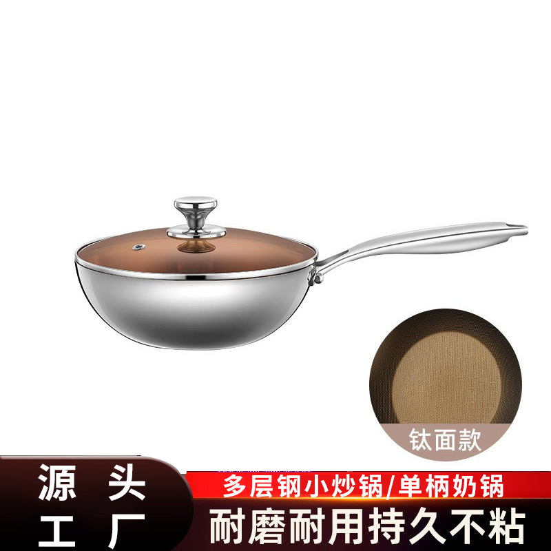 316チタンコーティング炒め鍋の鉄鍋家庭用は、小さな炒め鍋の電磁ストーブのフラットなミルク鍋のスープ鍋をくっつけないで一人で食べる