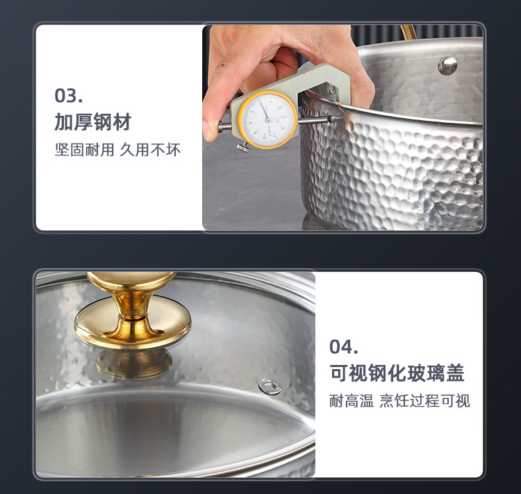 食品級304ステンレス鍋家庭用厚さ大容量ハンマー清湯鍋電磁炉通用湯鍋具