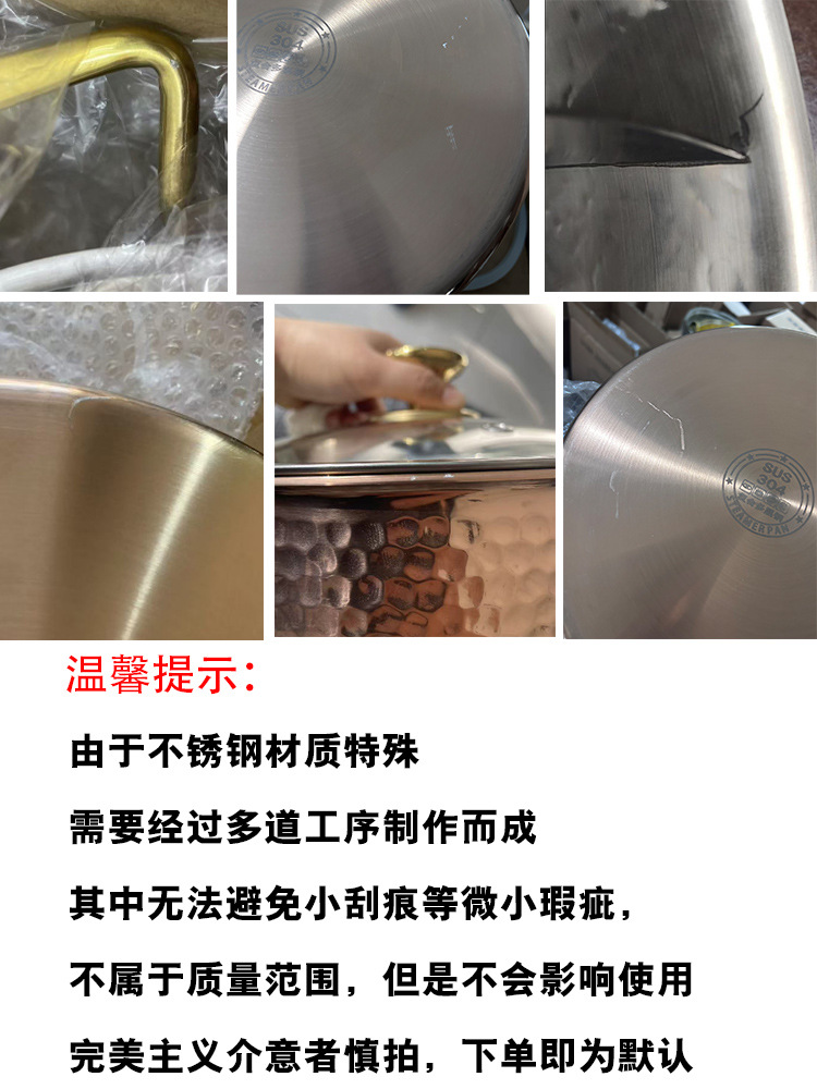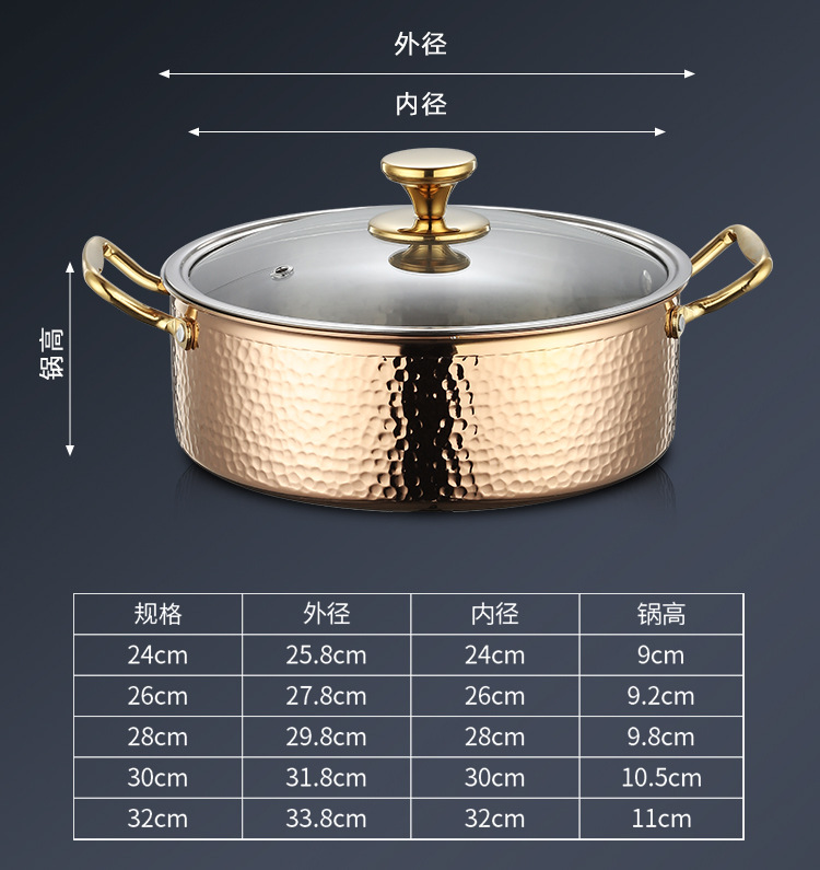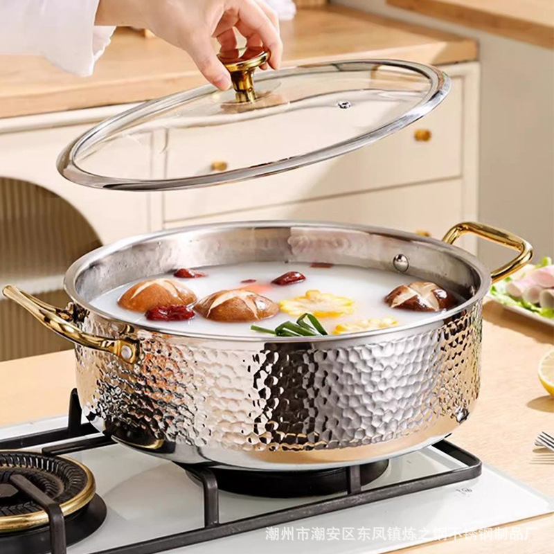 厚さ304複合鋼ハンマー模様金色スープ鍋家庭用大容量鍋は耳スープ鍋電磁ストーブにくっつかない