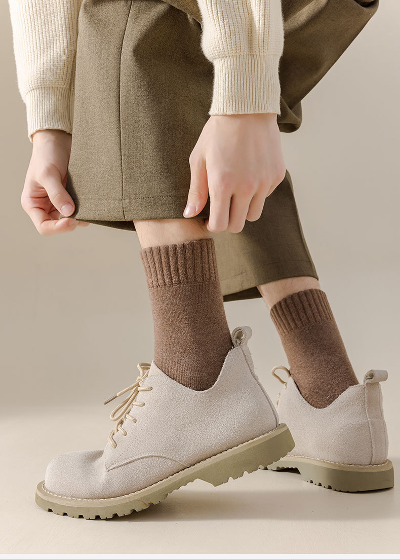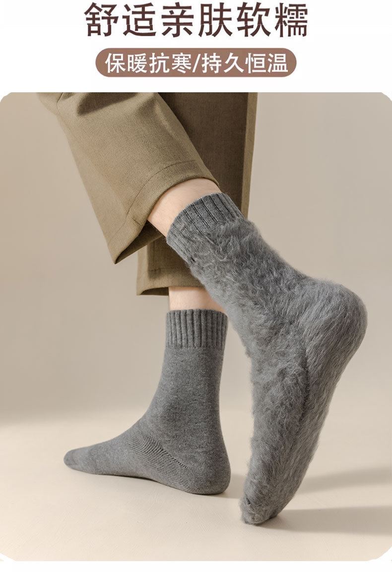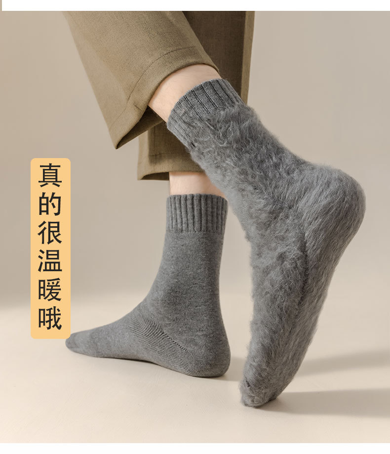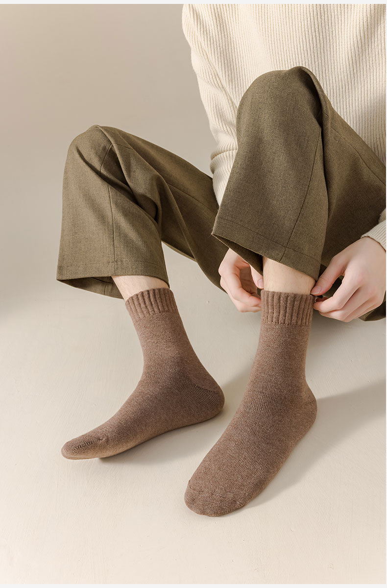 冬にベルベットを厚くした靴下男保温カシミヤ靴下男の中筒靴下毛輪純色冬耐寒老人靴下