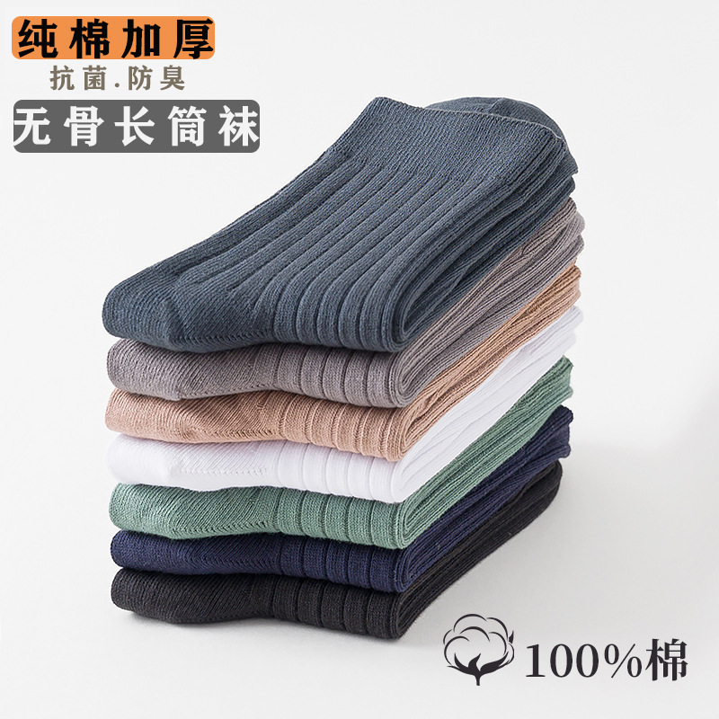 抗起球ビジネス靴下純綿純色中筒靴下男性防臭吸湿排汗レトロ高品質カジュアル男性靴下
