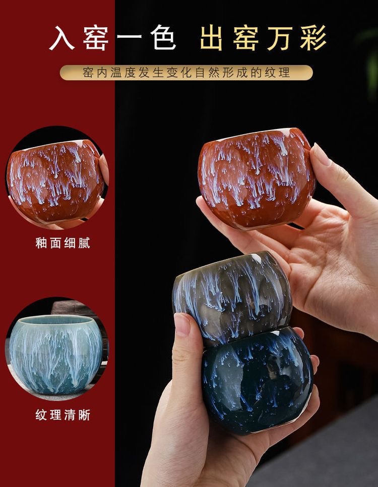 ティーカップを建てるシングル窯変ティーカップ主人シングルカップ純粋な手作り陶磁器茶碗工夫茶道具茗杯卸売り