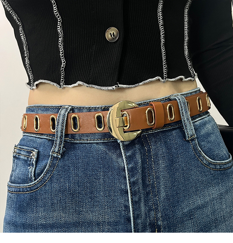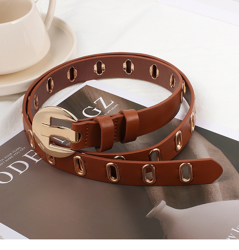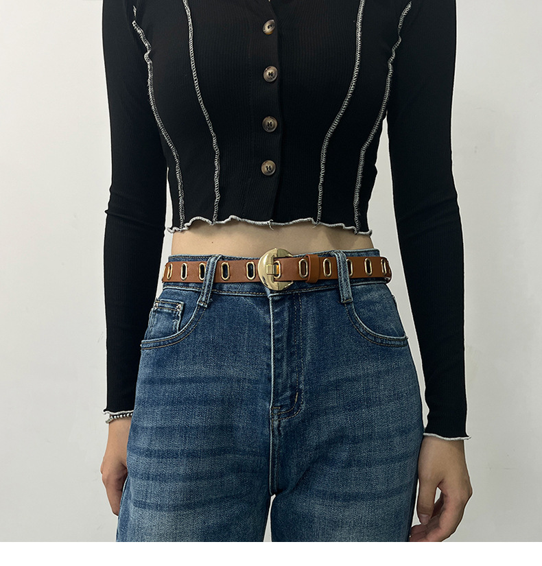 レディースブラウンベルト、夏用万能インスタイル、黒装飾ベルト、メンズ2025新作