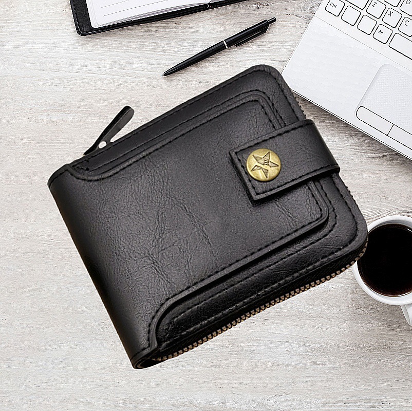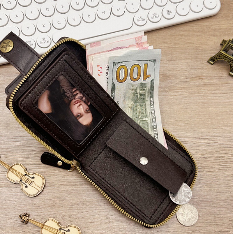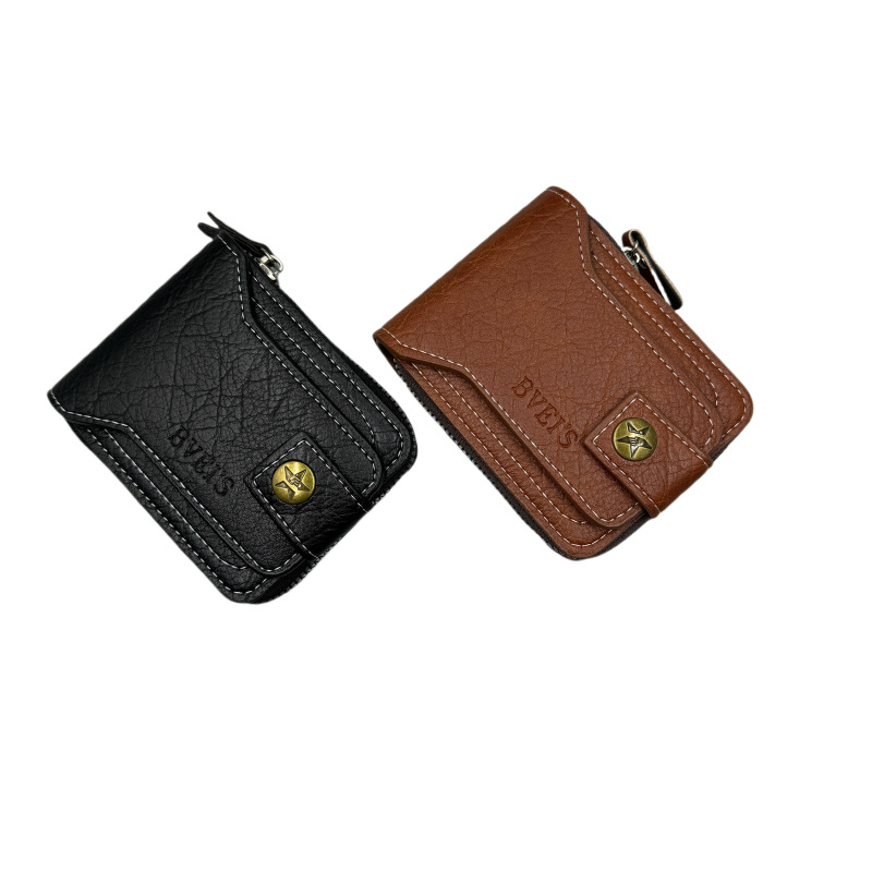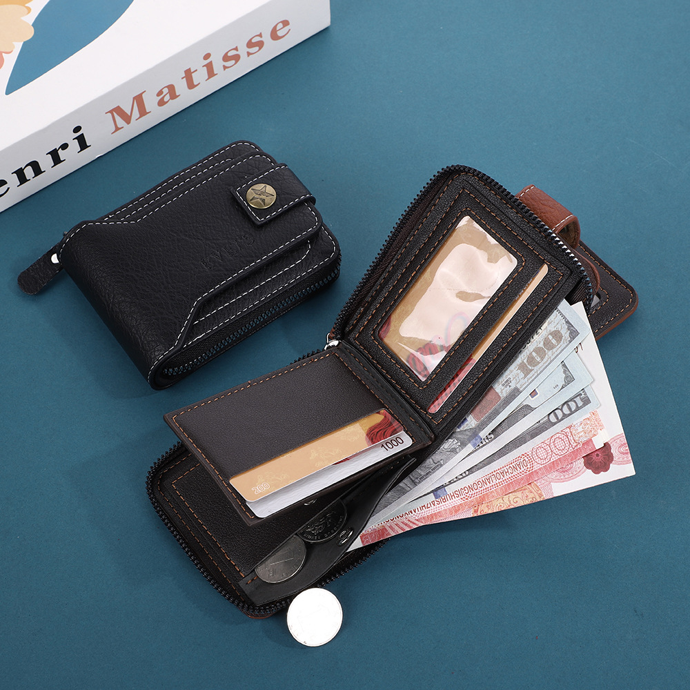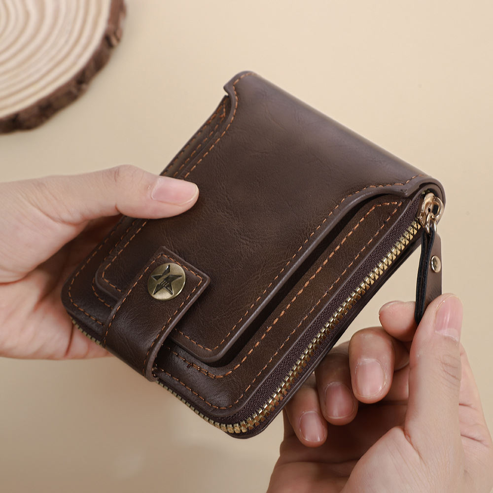跨境热销复古男士高级感短款拉链钱包零钱收纳卡包亚马逊厂家现货