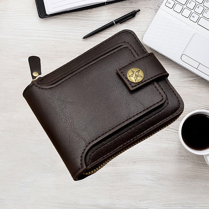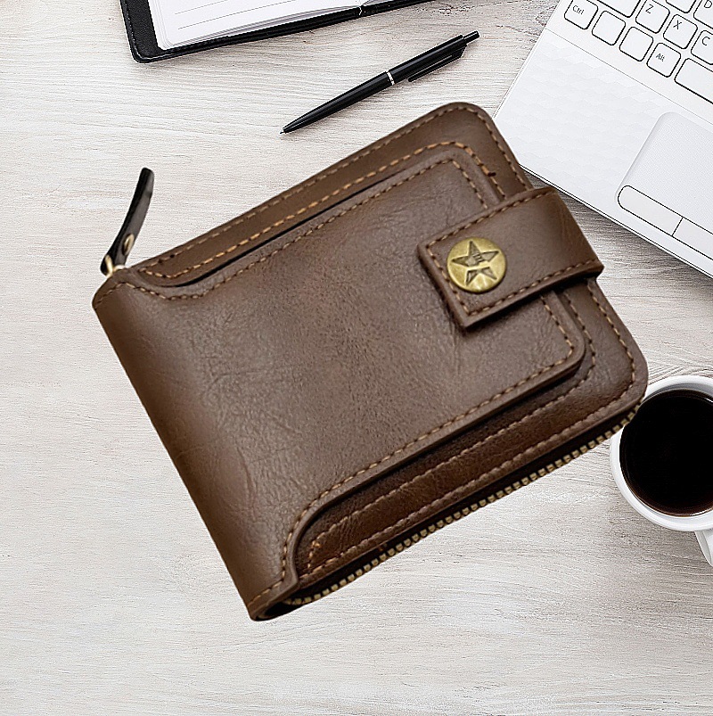 跨境男士钱包短款复古时尚多卡位大容量钱夹亚马逊爆款零钱拉链包