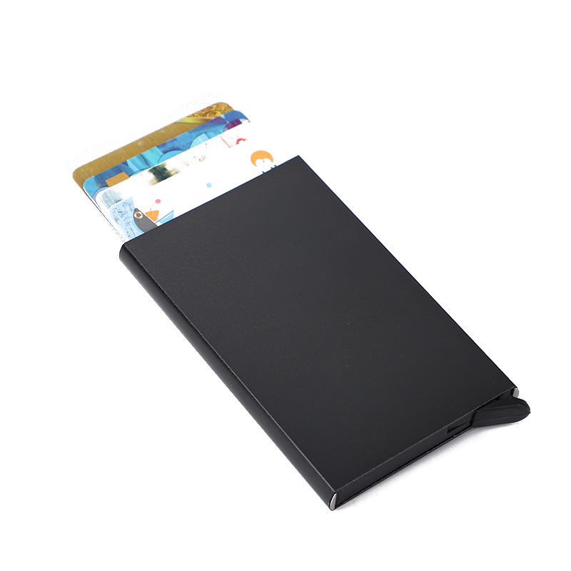 自動ポップアップ名刺ホルダーアルミ合金クレジットカードカードケース盗難防止ブラシ金属カードバッグRFIDアンチ消磁カード