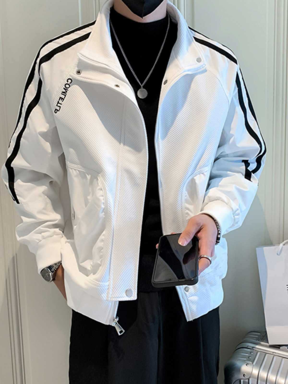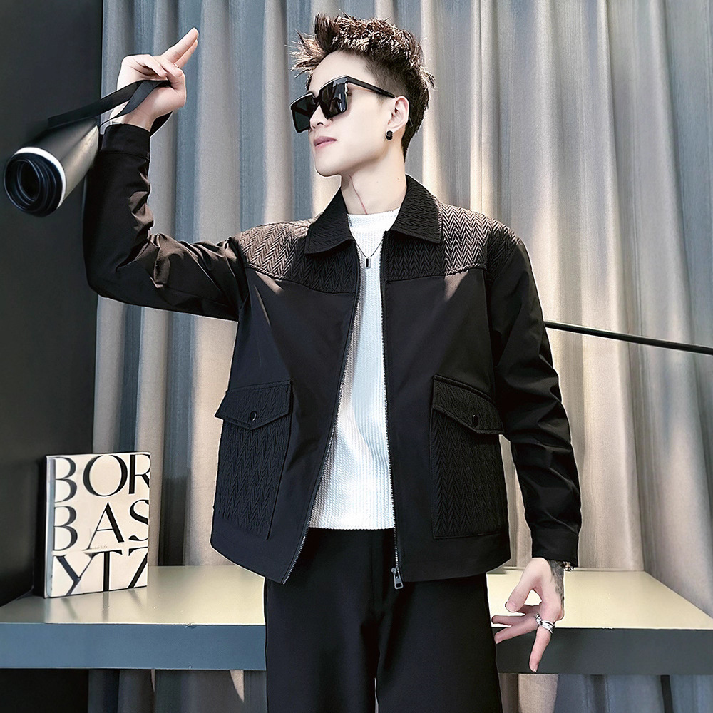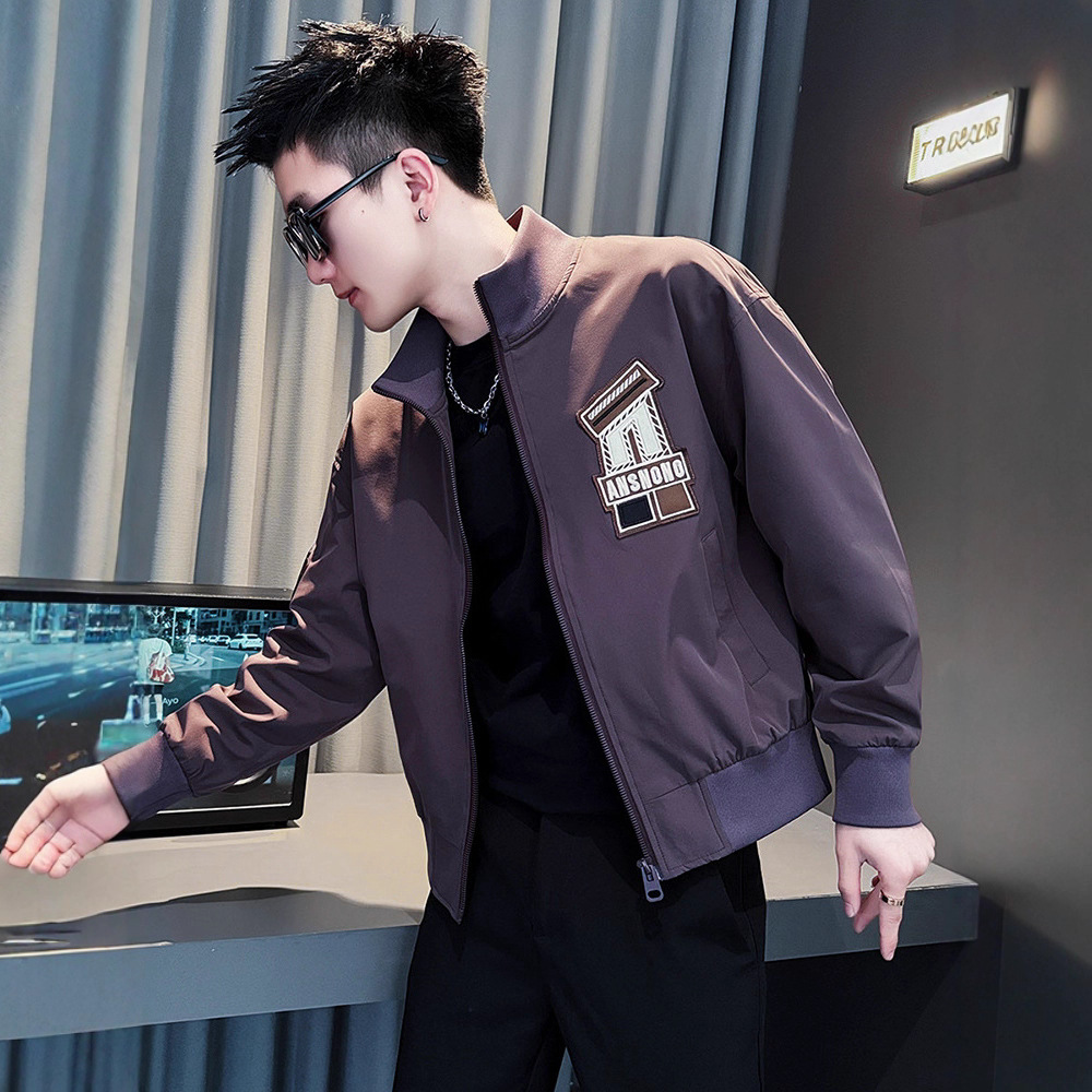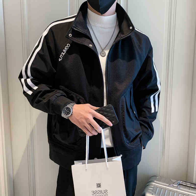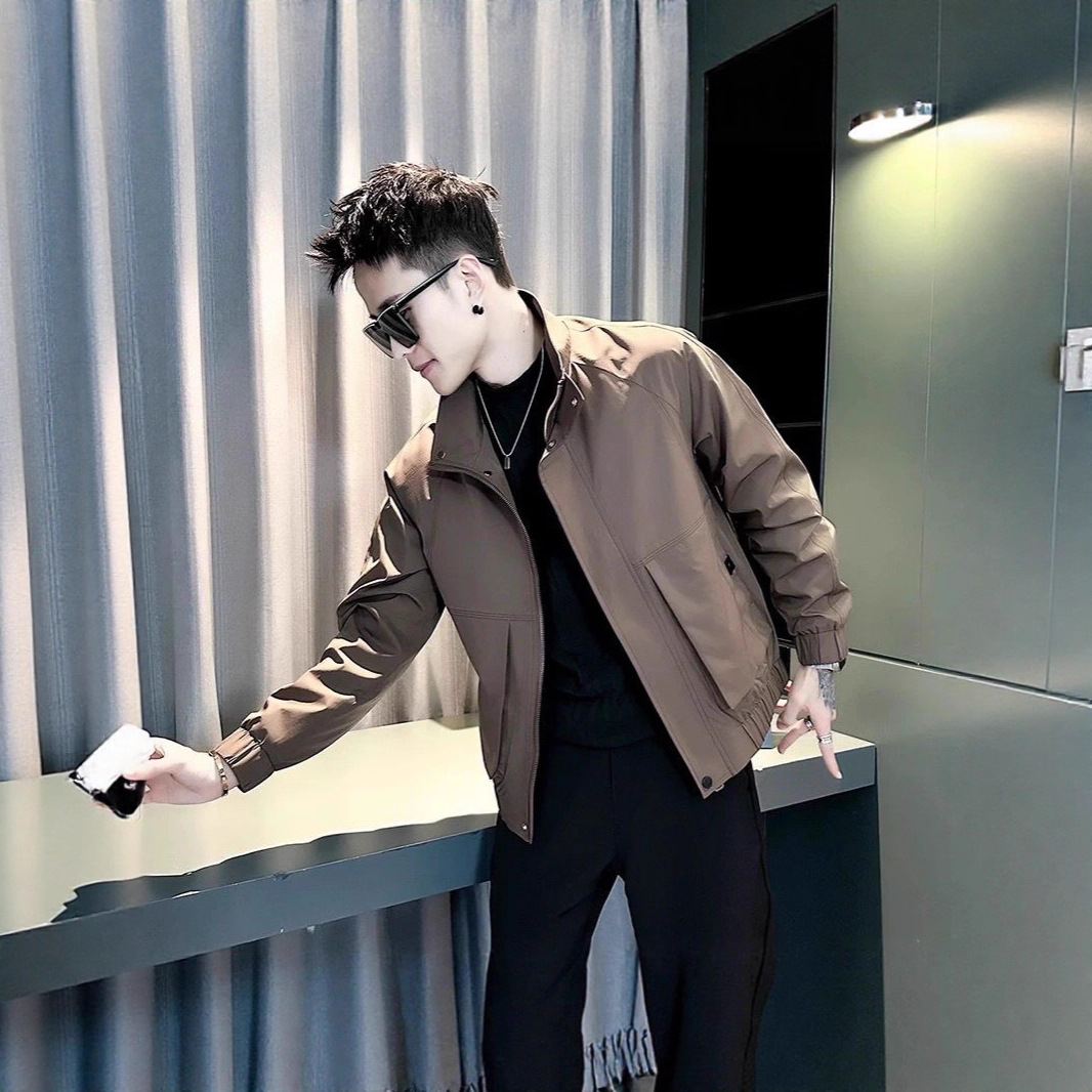 格好いい新型春秋ジャケット男性ジャケット高級感ファッションブランド男性服立襟青少年上着修身金