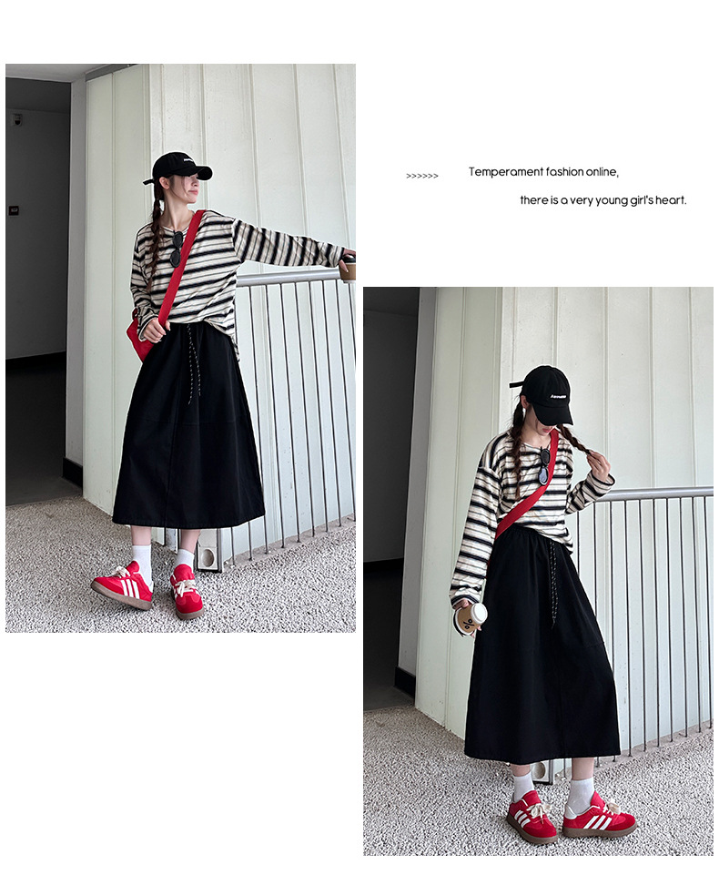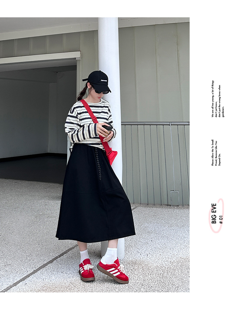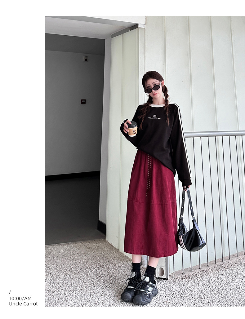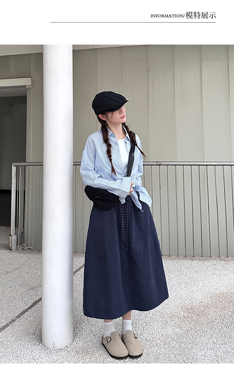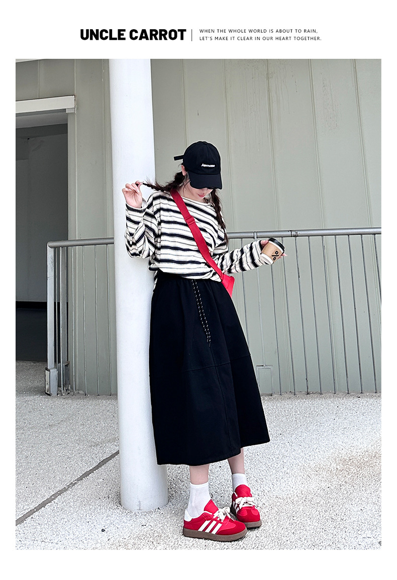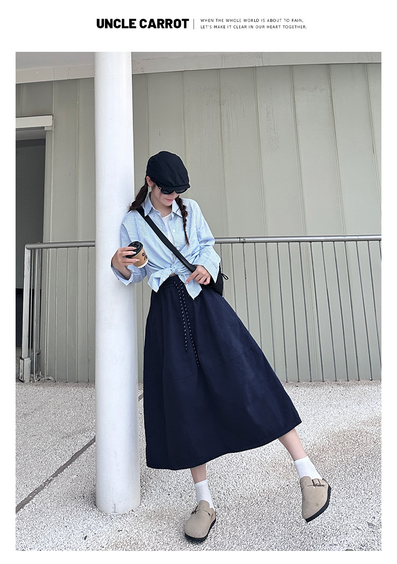 萝卜大叔时尚细坑条系带南瓜裙子时尚百搭大摆伞裙灯芯绒半身裙女