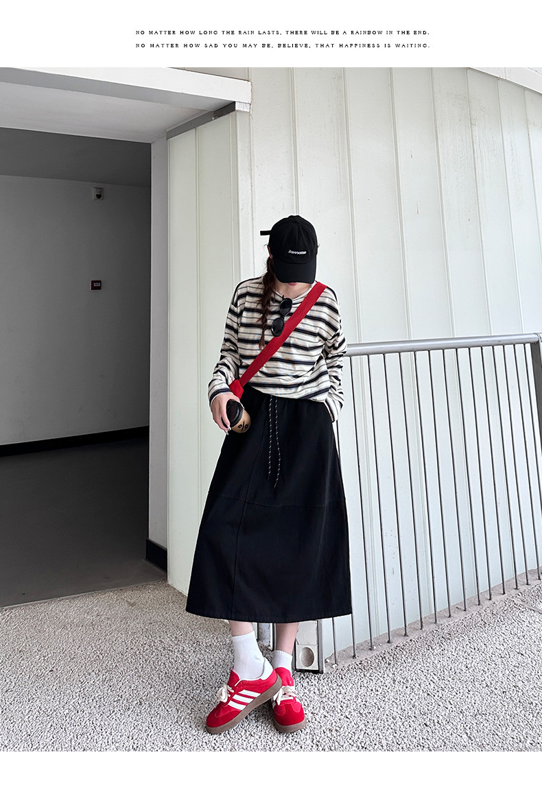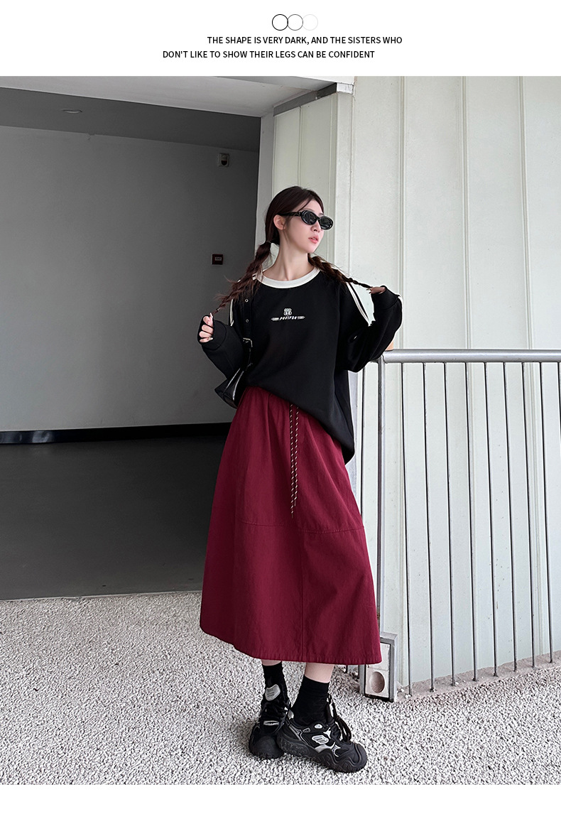灰色设计感开叉针织半身裙女秋冬松紧腰抽绳百搭裙子中长款直筒裙