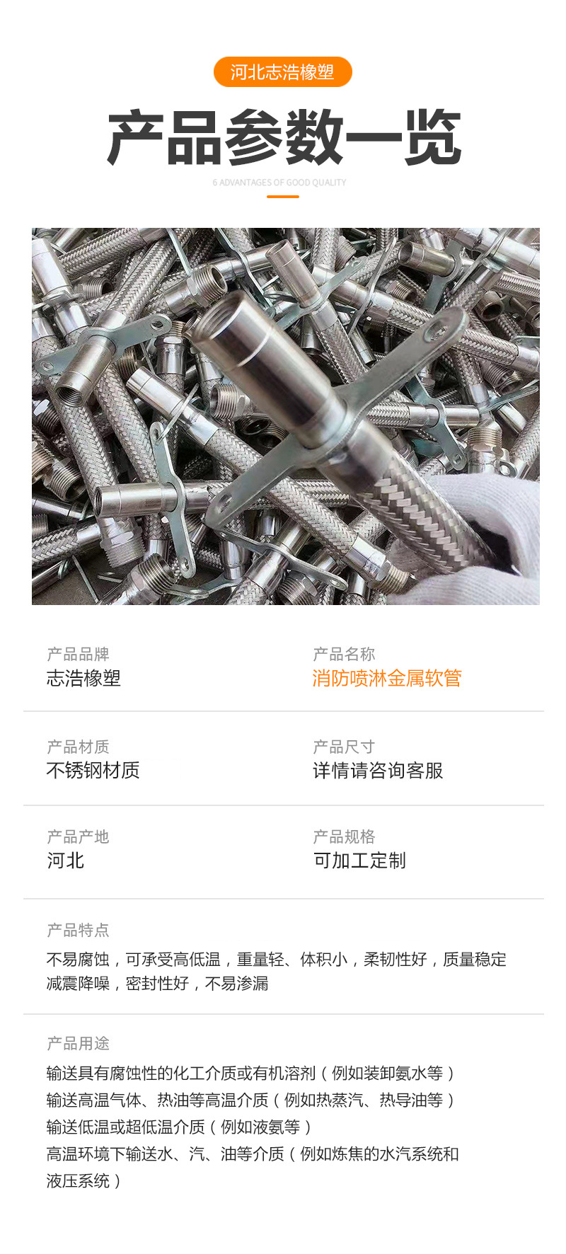 ブラケット式スプリンクラーホース 建築・化学排水・消防用スプリンクラー金属ホース ステンレス金属ホース