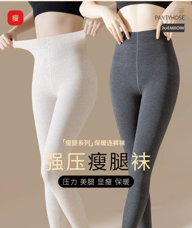 秋冬用綿混素材フラットウエストパンスト、女性用素肌風ブラックストッキング、裏起毛厚手レギンス