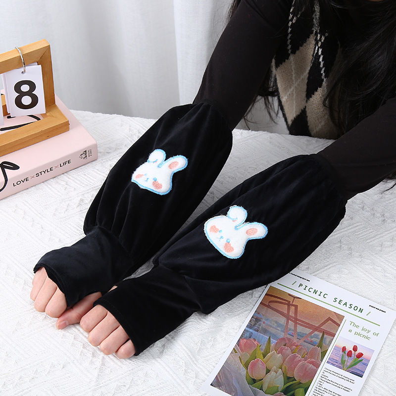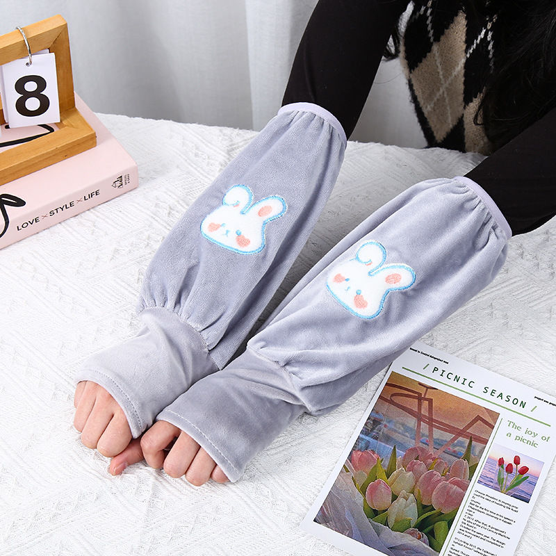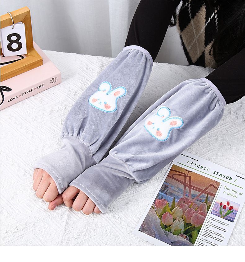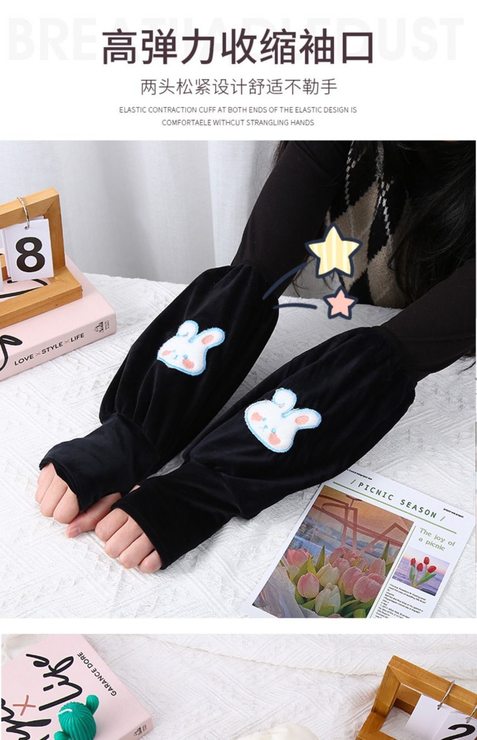 卡通保暖套袖新款二合一毛绒手套暖手秋冬袖头耐脏袖套护袖学生女