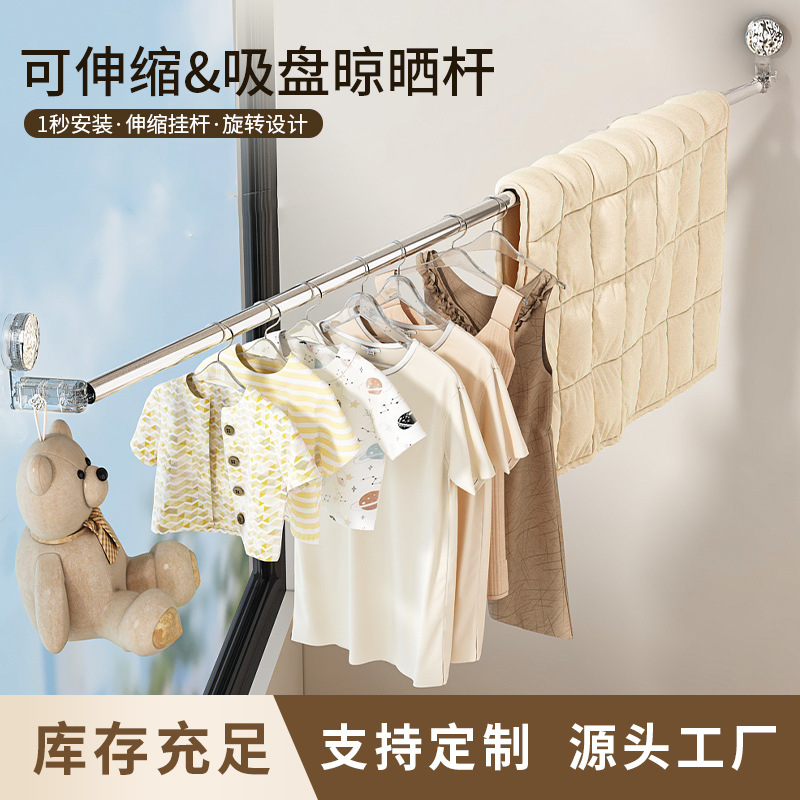 吸盤ノブ伸縮式物干しポール家庭用ベランダ干しハンガー一体穴なし折りたたみカーテン物干し卸