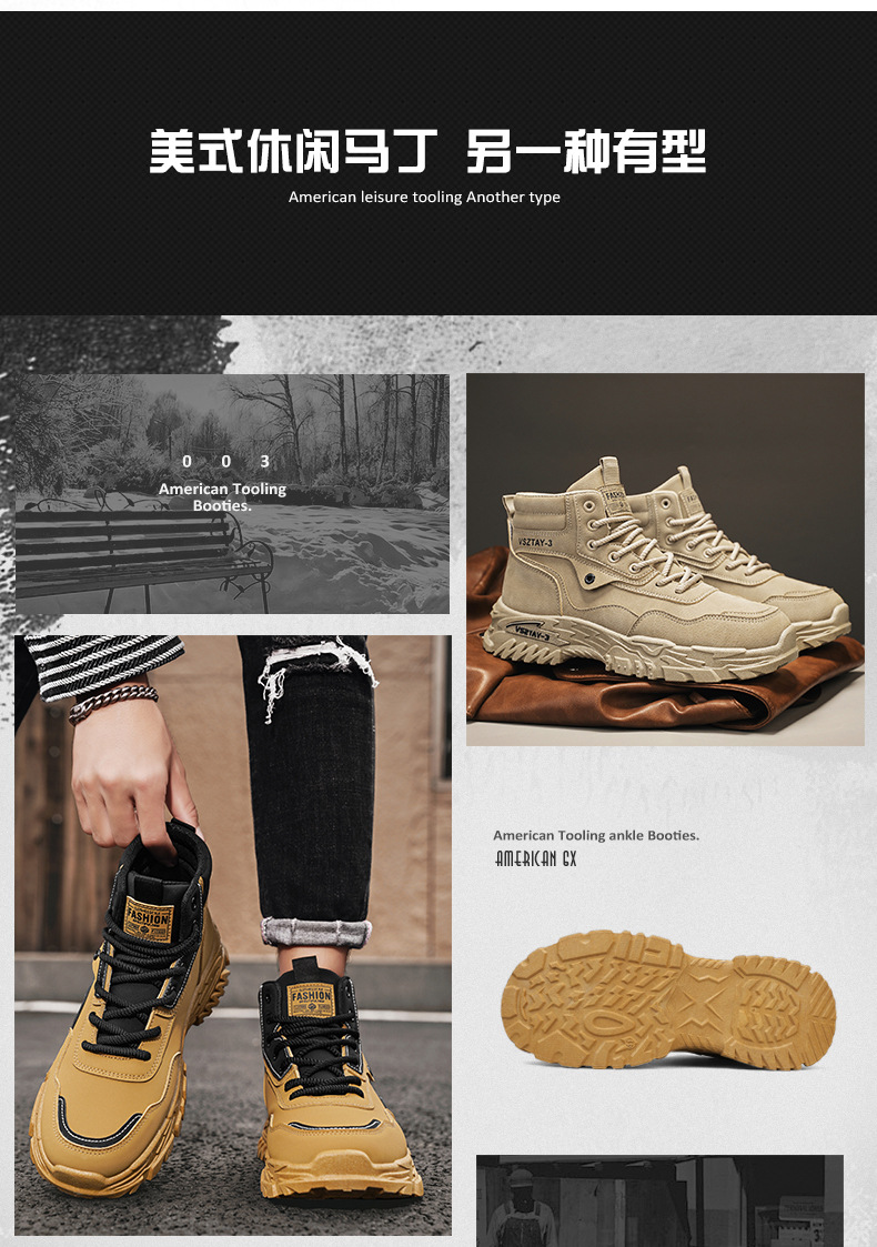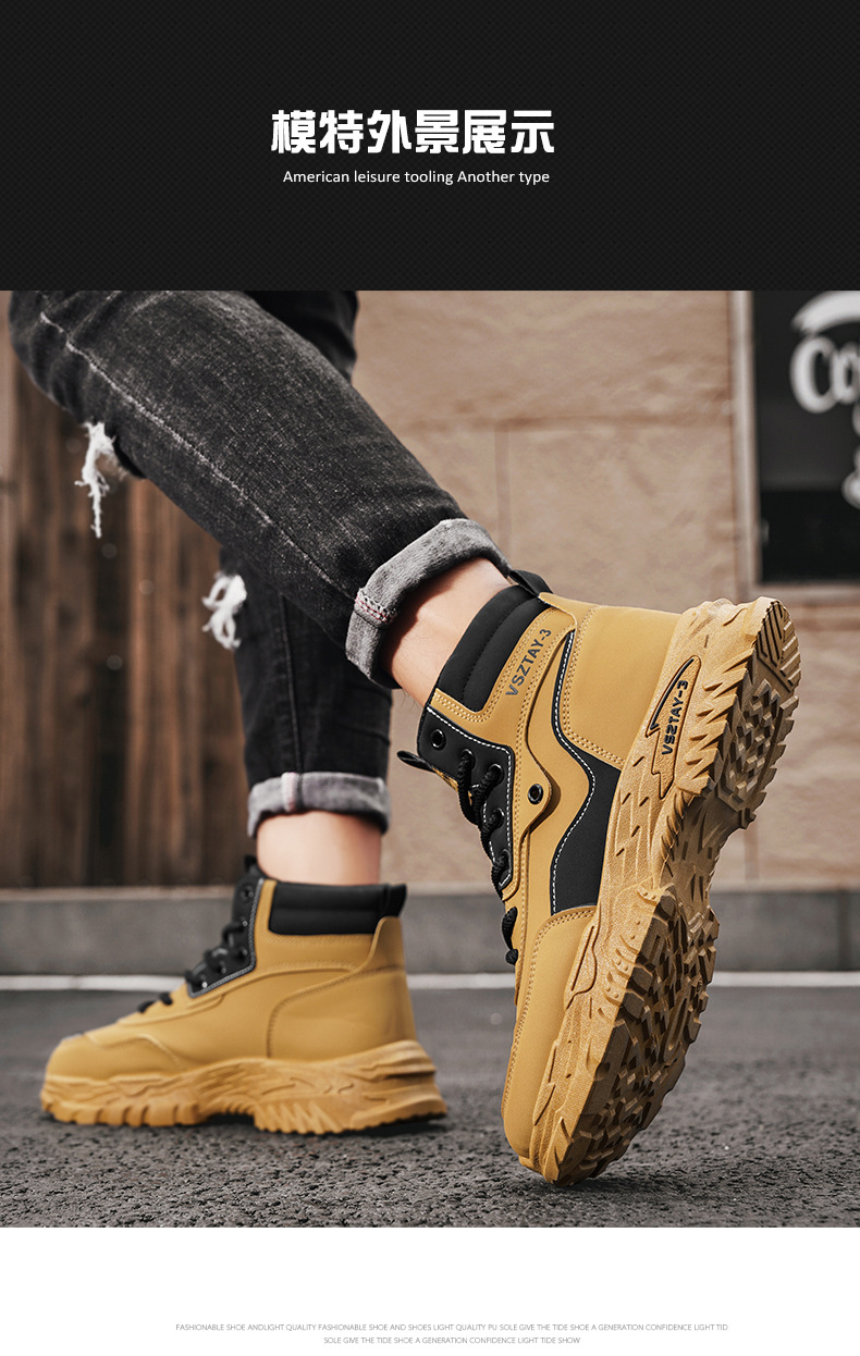男靴2024秋の新型ファッションカジュアル復古英倫風工事現場の仕事の厚い底の耐摩耗性工装マーティンブーツ