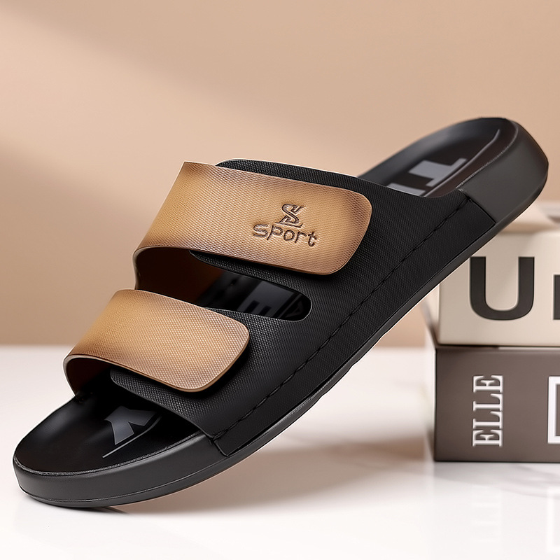 スリッパ男性2025新型夏外着カジュアル男性高級感マジックテープソフト底男性ビーチサンダル