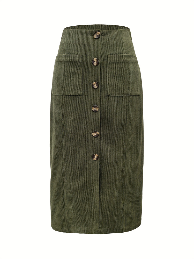 2025欧美跨境女装亚马逊复古灯芯绒单排扣高腰秋冬时尚经典半身裙