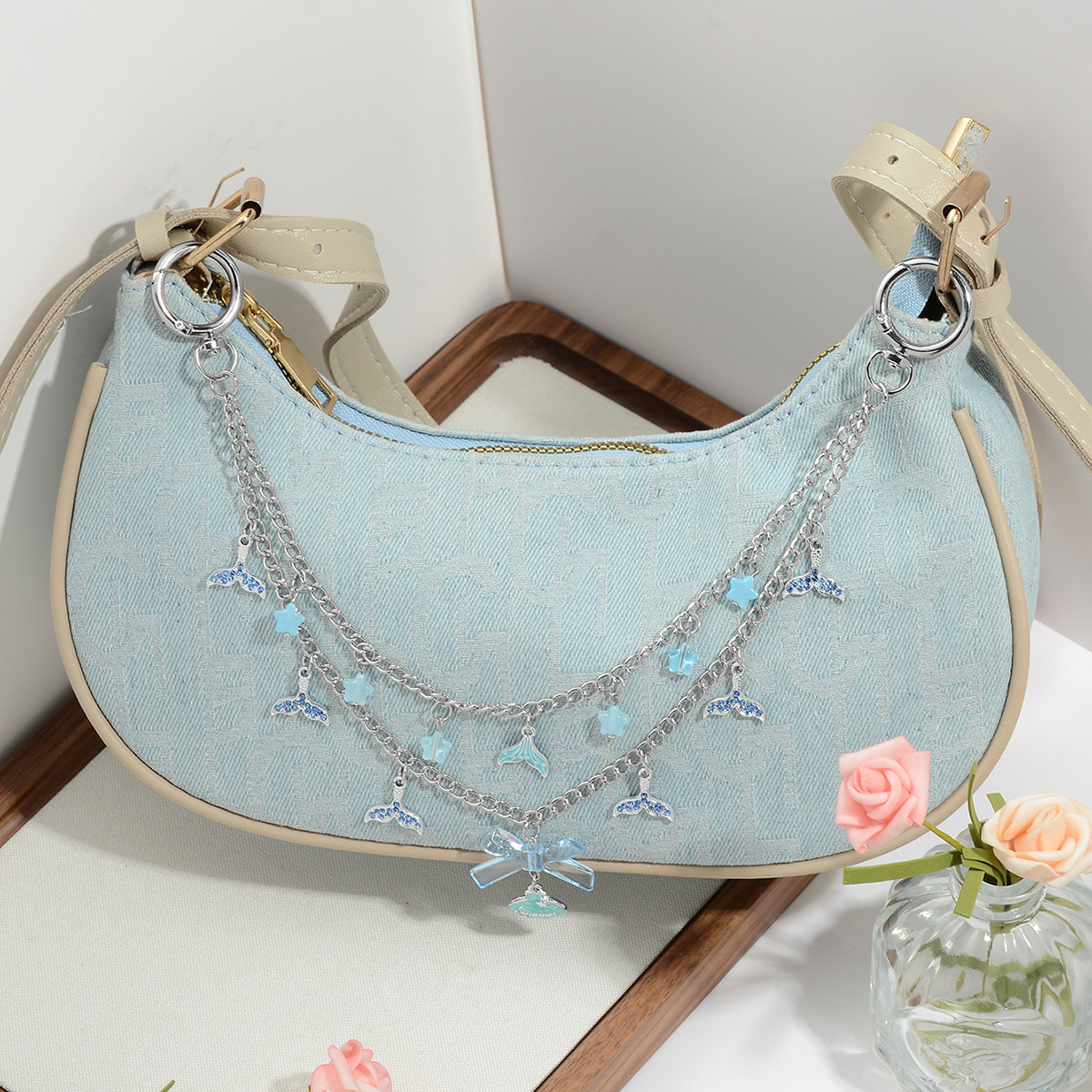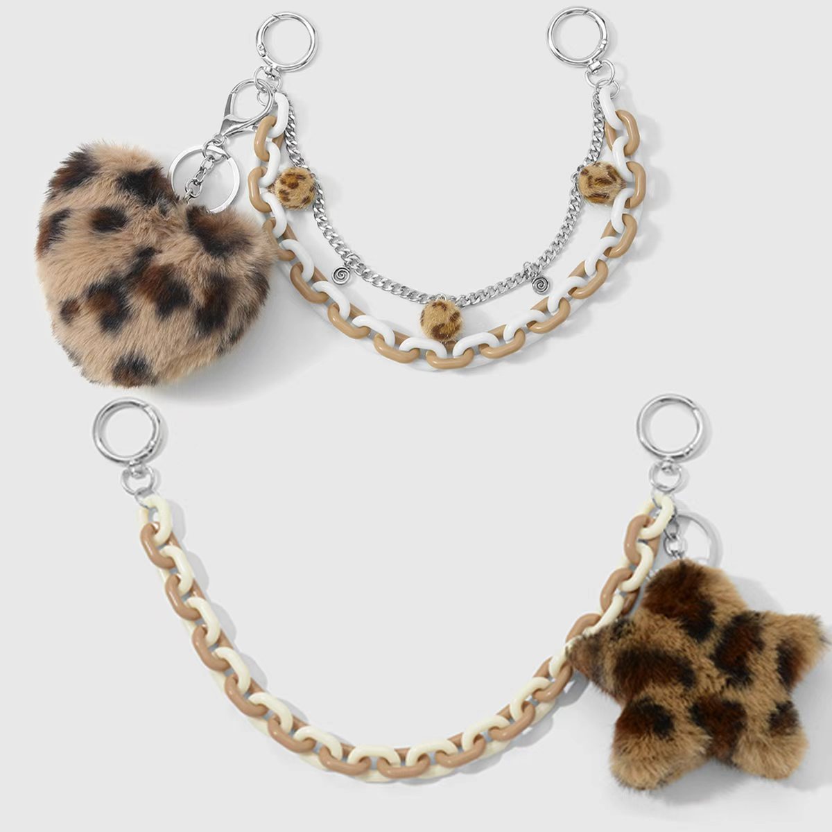 y2k甜酷时尚复古美拉德棕色豹纹爱心星星链条小球DIY包包挂件挂饰