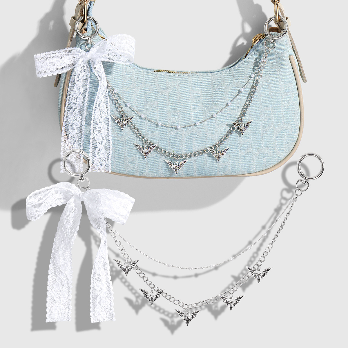 甜美个性精致仿珍珠多色蕾丝花边蝴蝶结蝙蝠星星月亮DIY包挂件