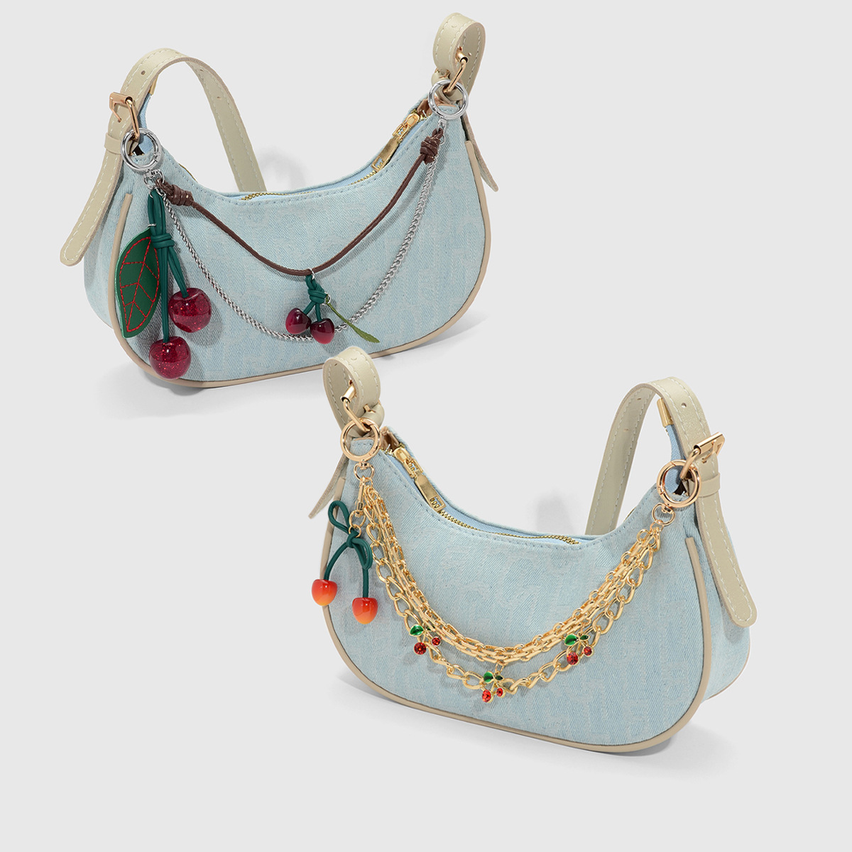 新しい y2k 絶妙な甘いクールなファッションマルチカラーチェーン樹脂ラインストーンファインフラッシュチェリーレザーリーフ DIY バッグペンダント