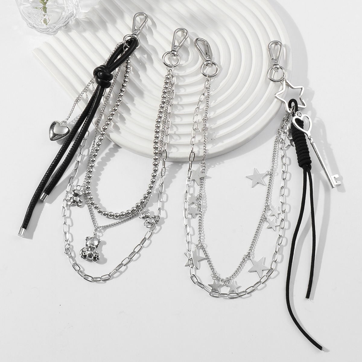 新しい y2k 個性甘い高価値シルバーチェーンリボンハートスターレースリボン DIY バッグペンダント