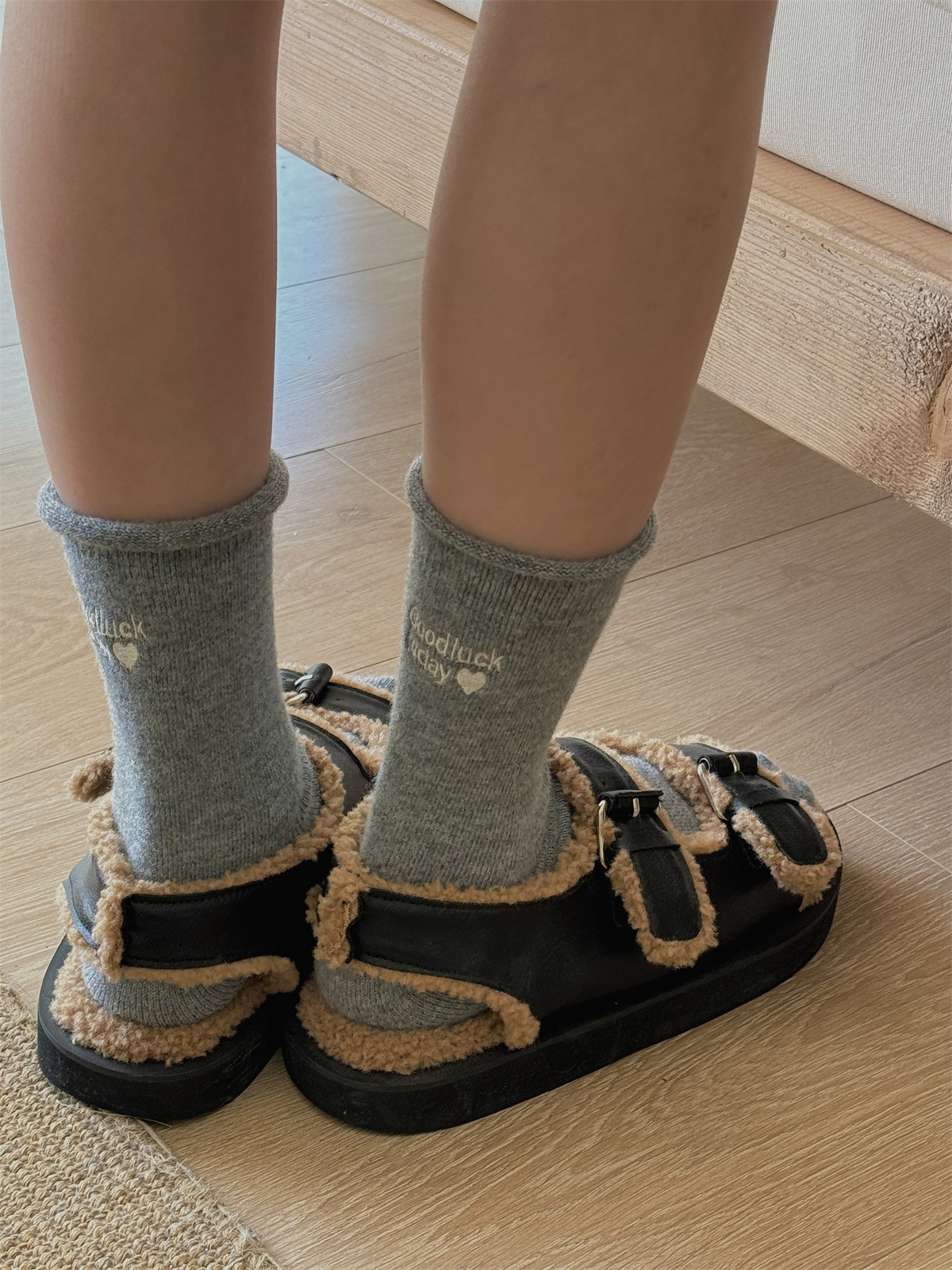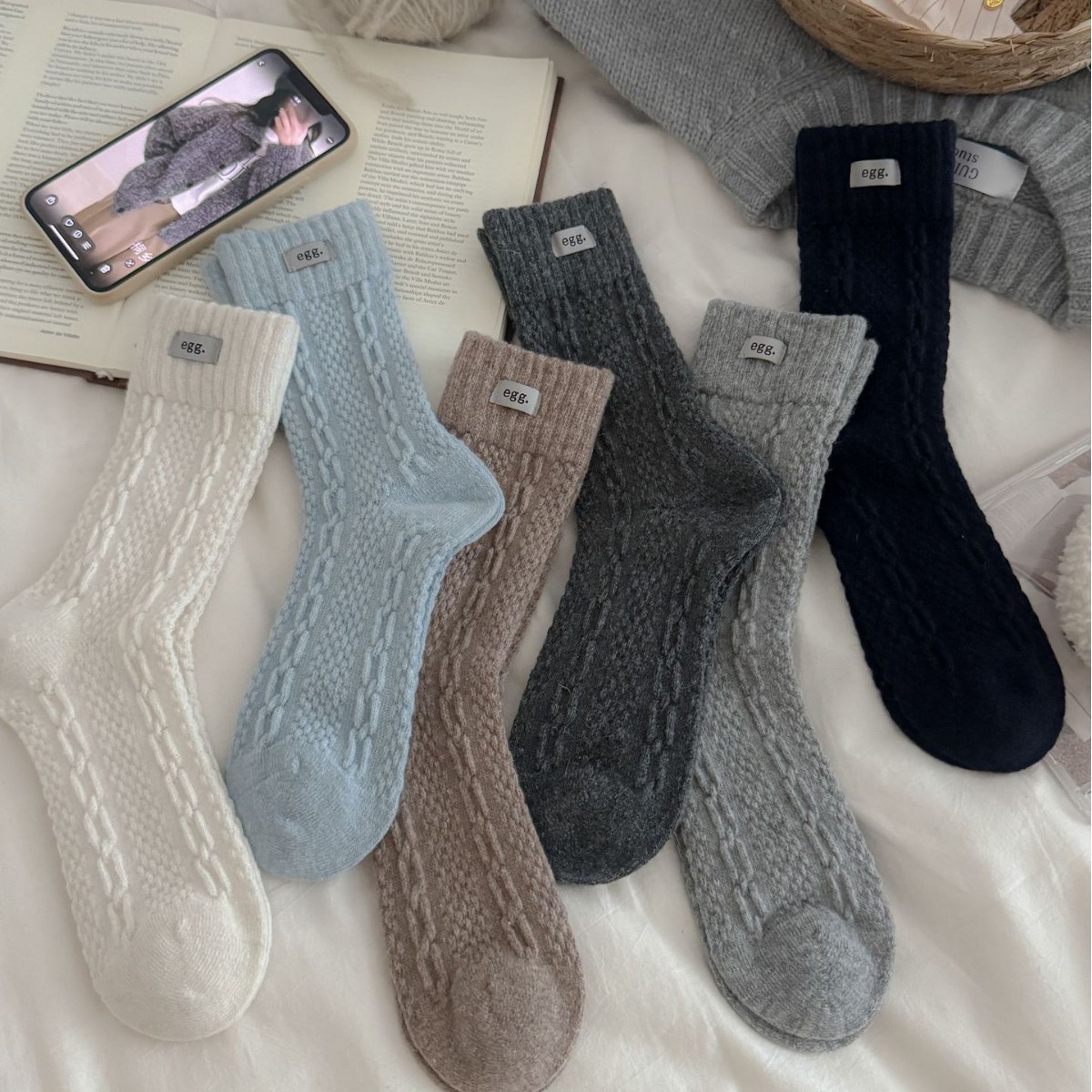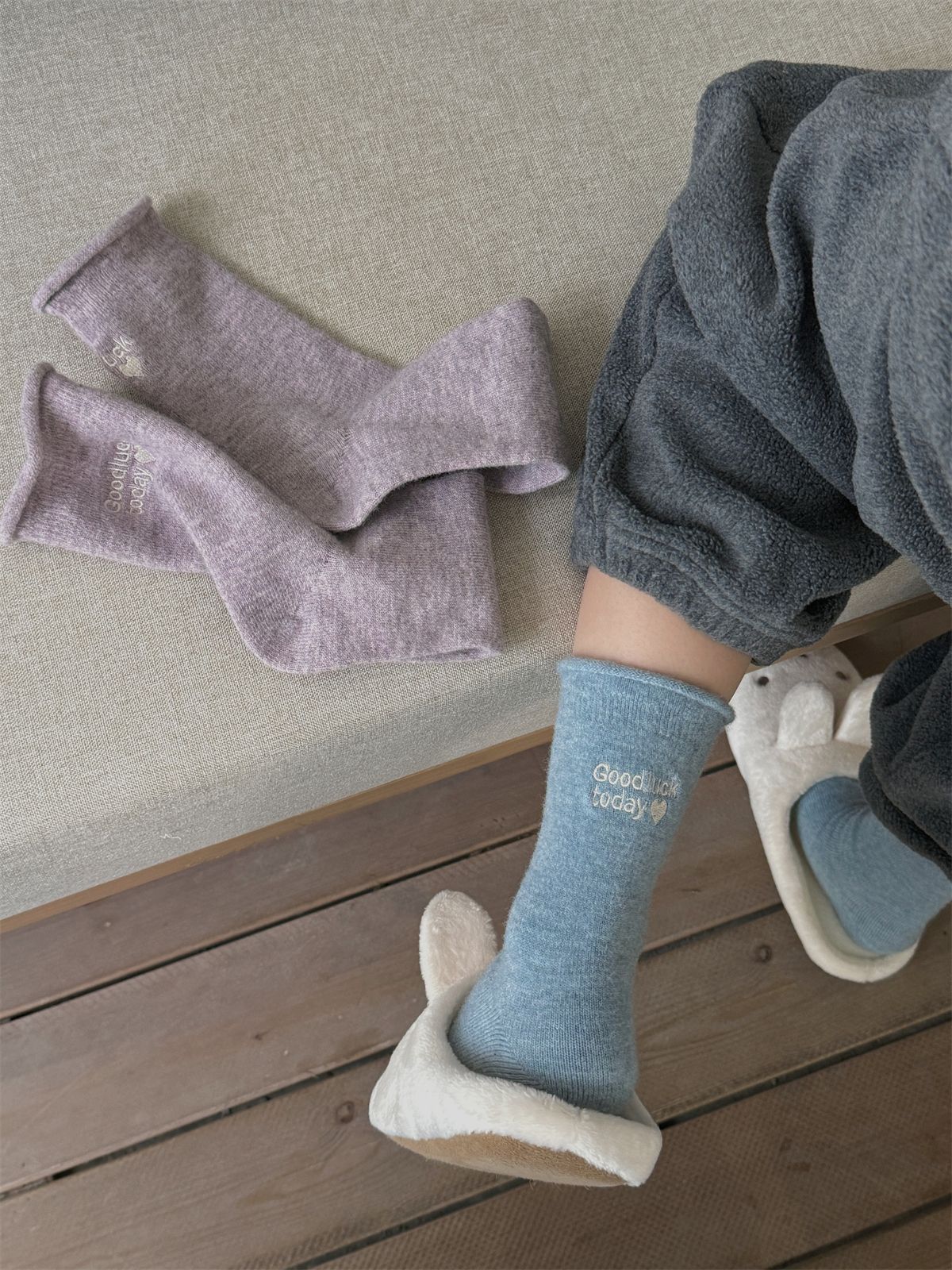 韩国小姐姐的松弛感~秋冬暖绒加厚保暖中筒羊毛袜灰色堆堆袜子女