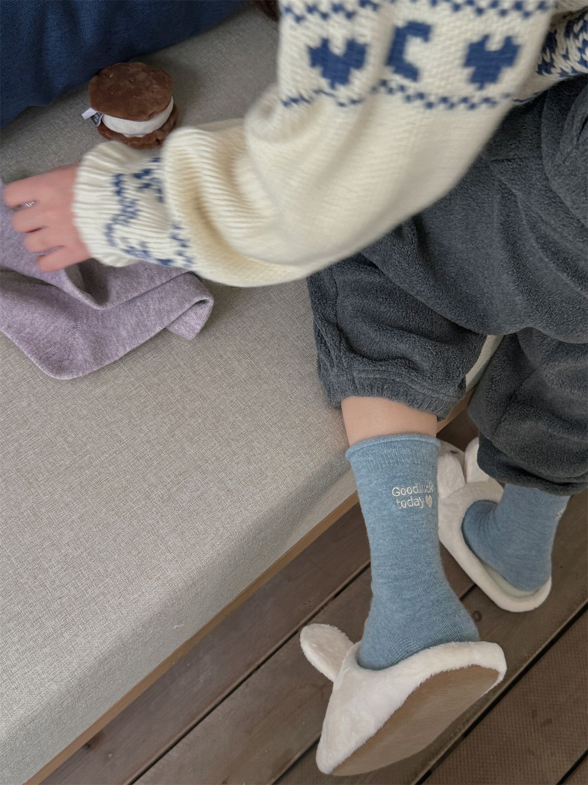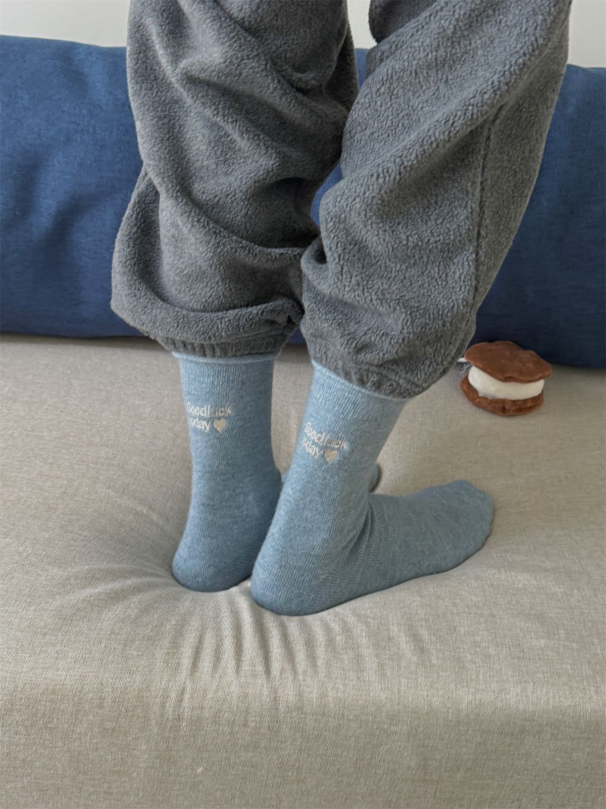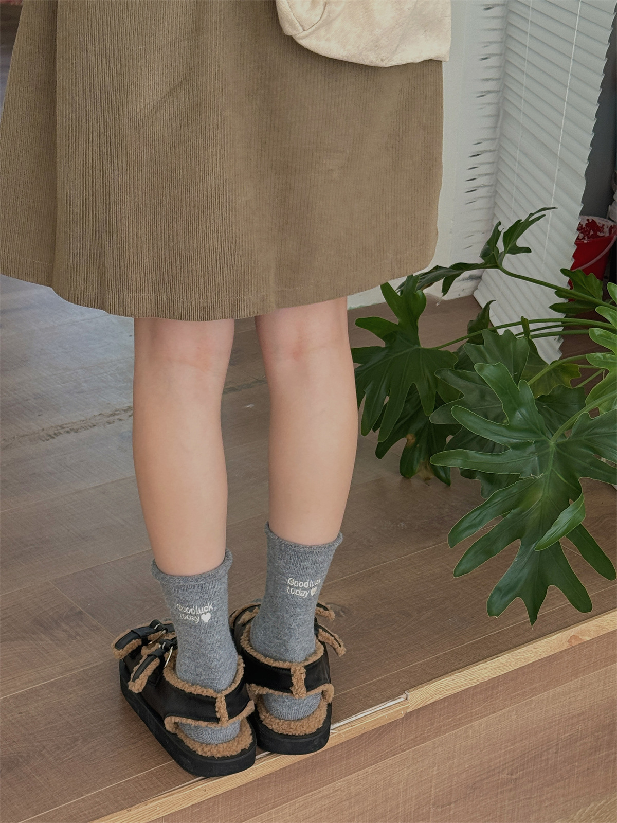 韩国小姐姐的松弛感~秋冬暖绒加厚保暖中筒羊毛袜灰色堆堆袜子女
