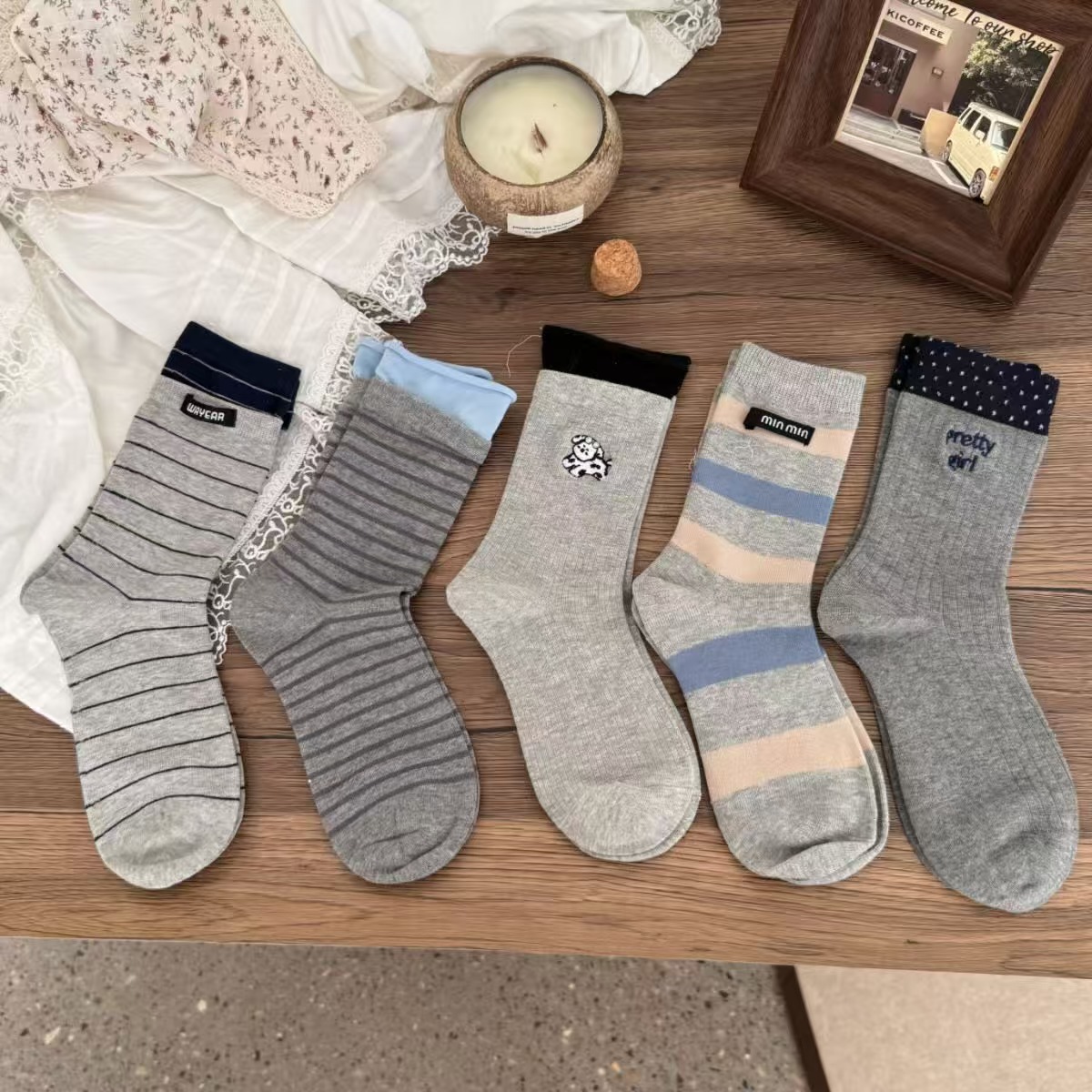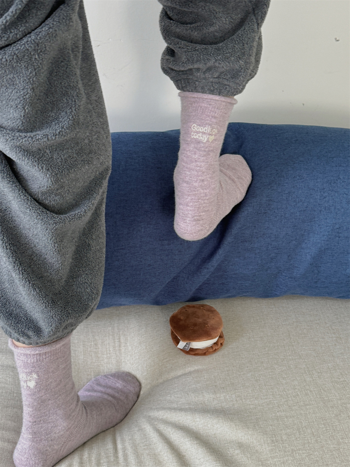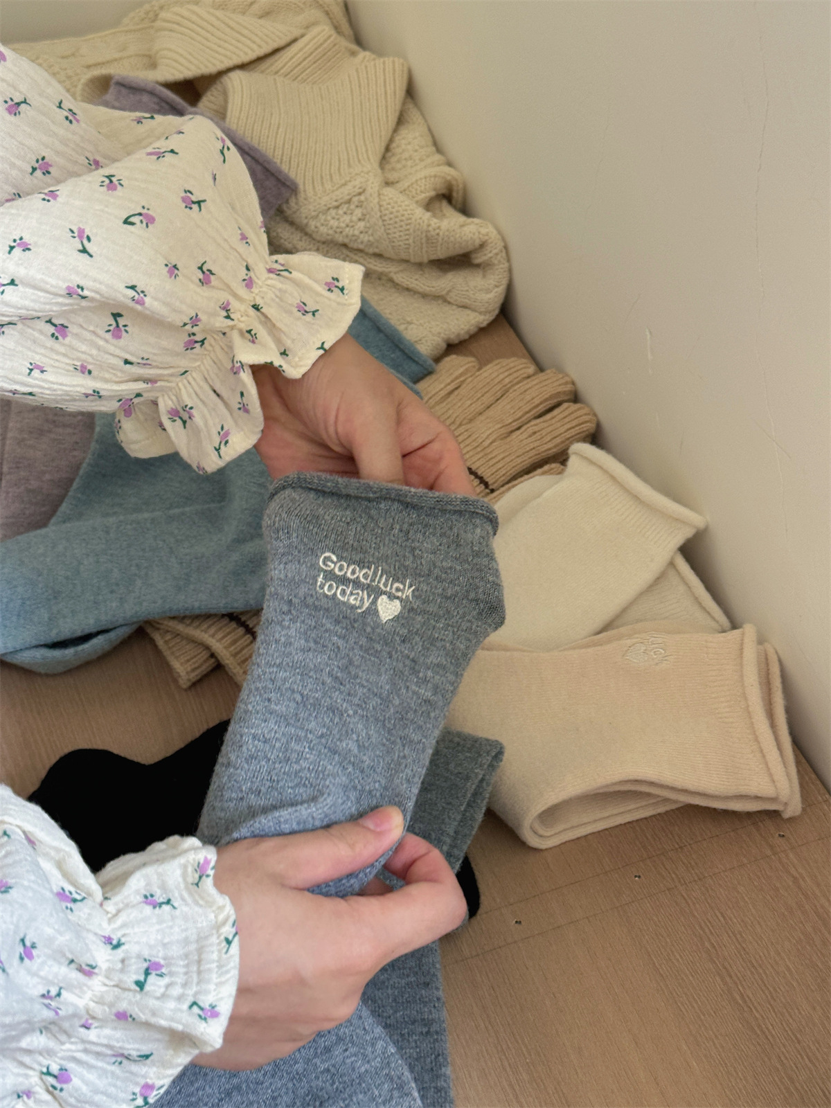秋冬氛围感灰粉色羊毛袜真的太少女啦韩国ins小红书同款中筒堆堆